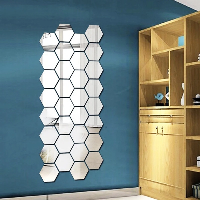 12 шт.компл. 3D зеркальная настенная наклейка, домашние декоративные зеркала, шестигранные самоклеящиеся зеркальные плитки, разноцветный домашний декор, Прямая поставка