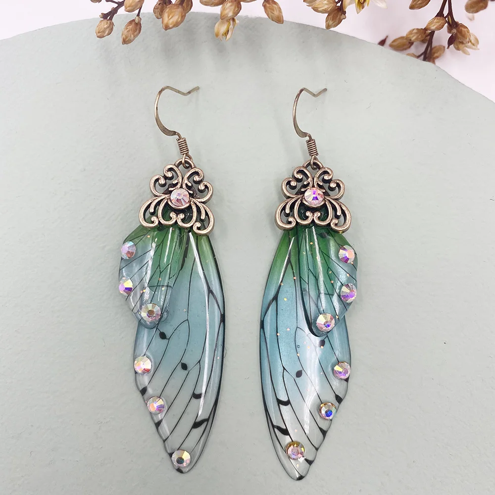 Красивые Висячие серьги с крыльями цикады, длинные ювелирные издели...