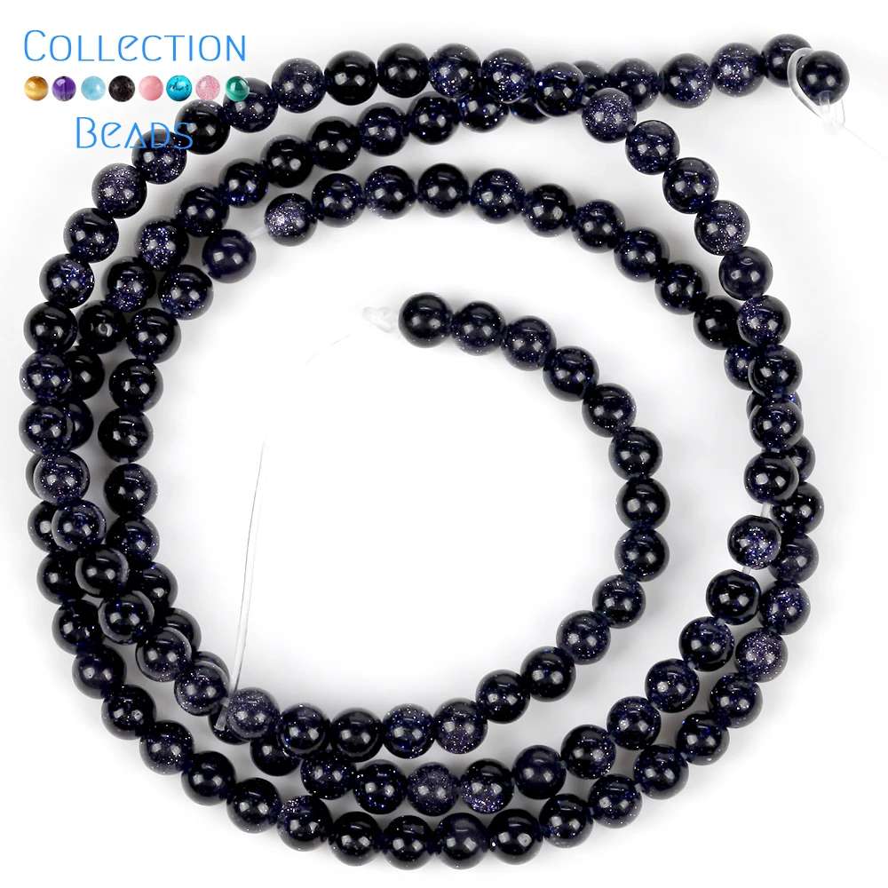 Натуральные Синие авантюрин, круглые бусины россыпью для изготовлен...