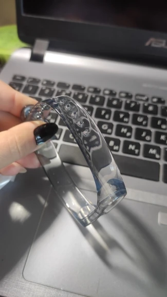 в описание нет того что браслет просто белый когда на него не попадают лучи солнца. этот браслет только на лето, качество хорошее, запаха нет. огорчило что он прозрачный все время.