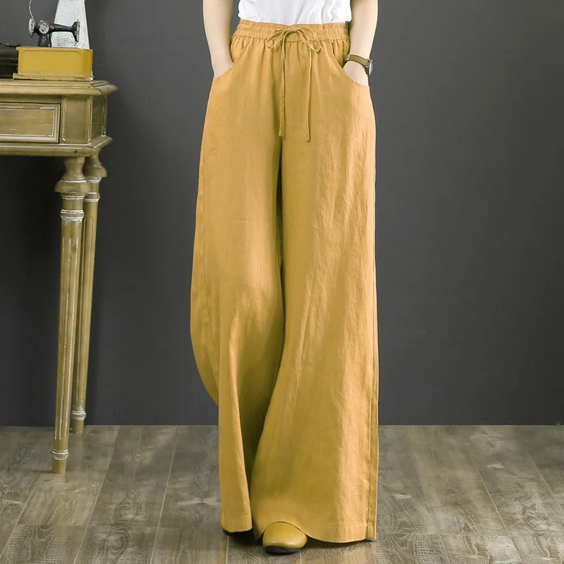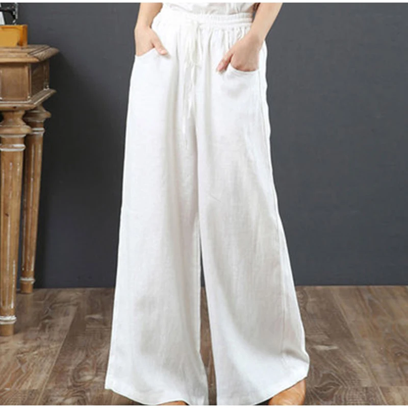 Брюки женские хлопково-льняные на шнуровке, винтажные повседневные штаны оверсайз с широкими штанинами, одежда для женщин, длинные штаны, лето 2021
