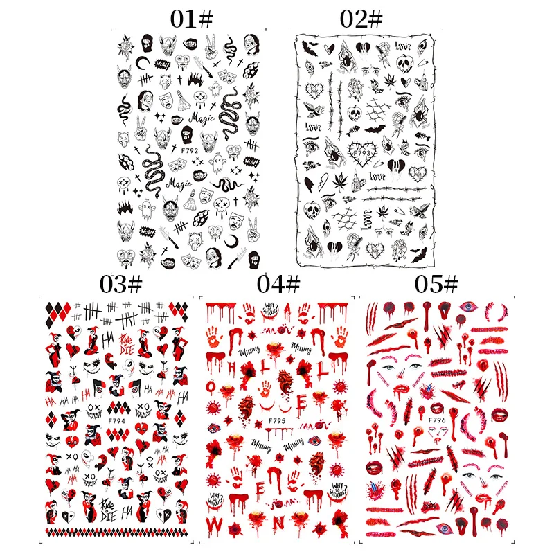 1 шт. Scarry Bloody Хэллоуин Рождественская тема 3D наклейки для ногтей красная рука шрам губы мультяшный слайдер дизайн ногтей