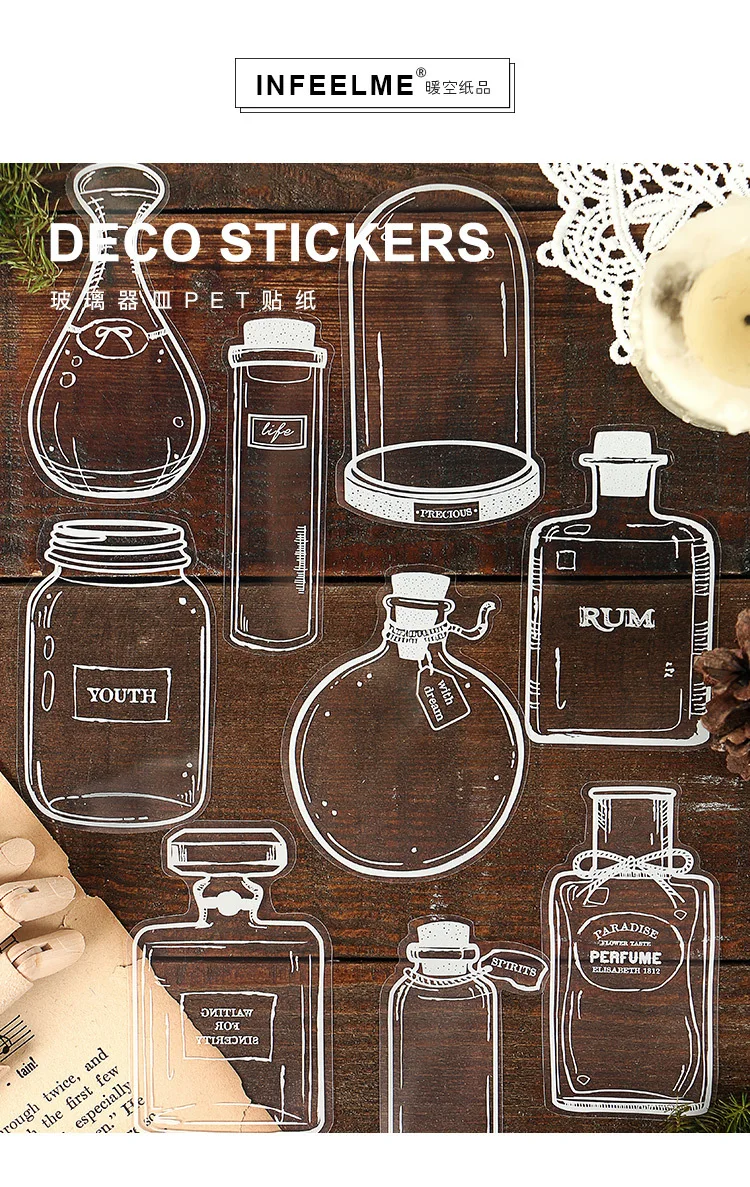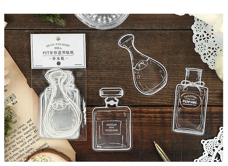 30 шт.компл. творческие прозрачные наклейки для стеклянных бутылок ...