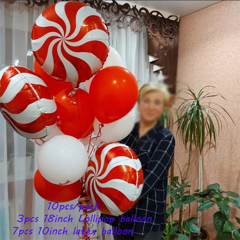 10 шт., фольгированные воздушные шары в виде сердца и леденца