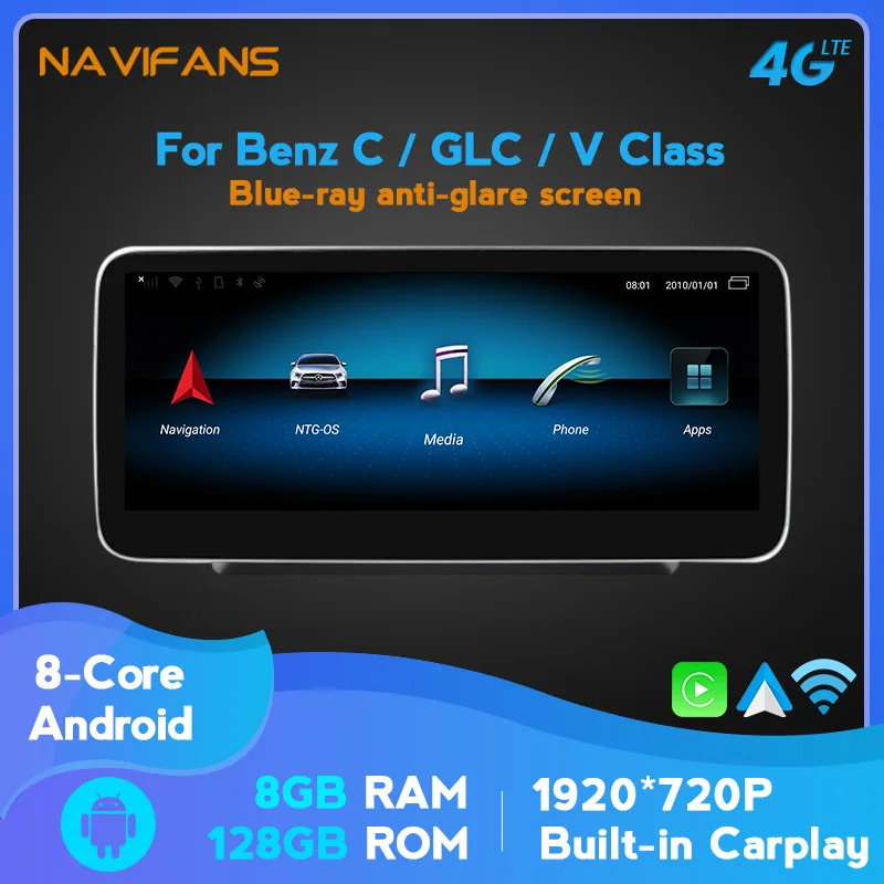 10,2512,5 дюймов Android 10 дисплей 4G для Benz C GLC Class W205 2015-2018 автомобильное радио навигация GPS синий луч экран