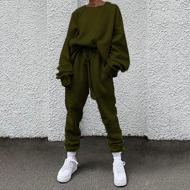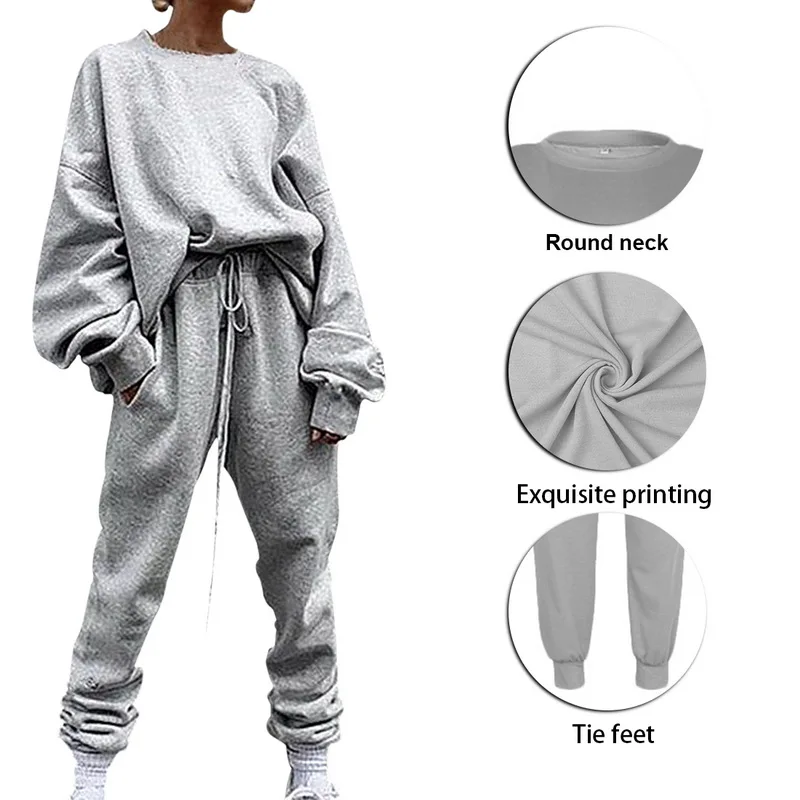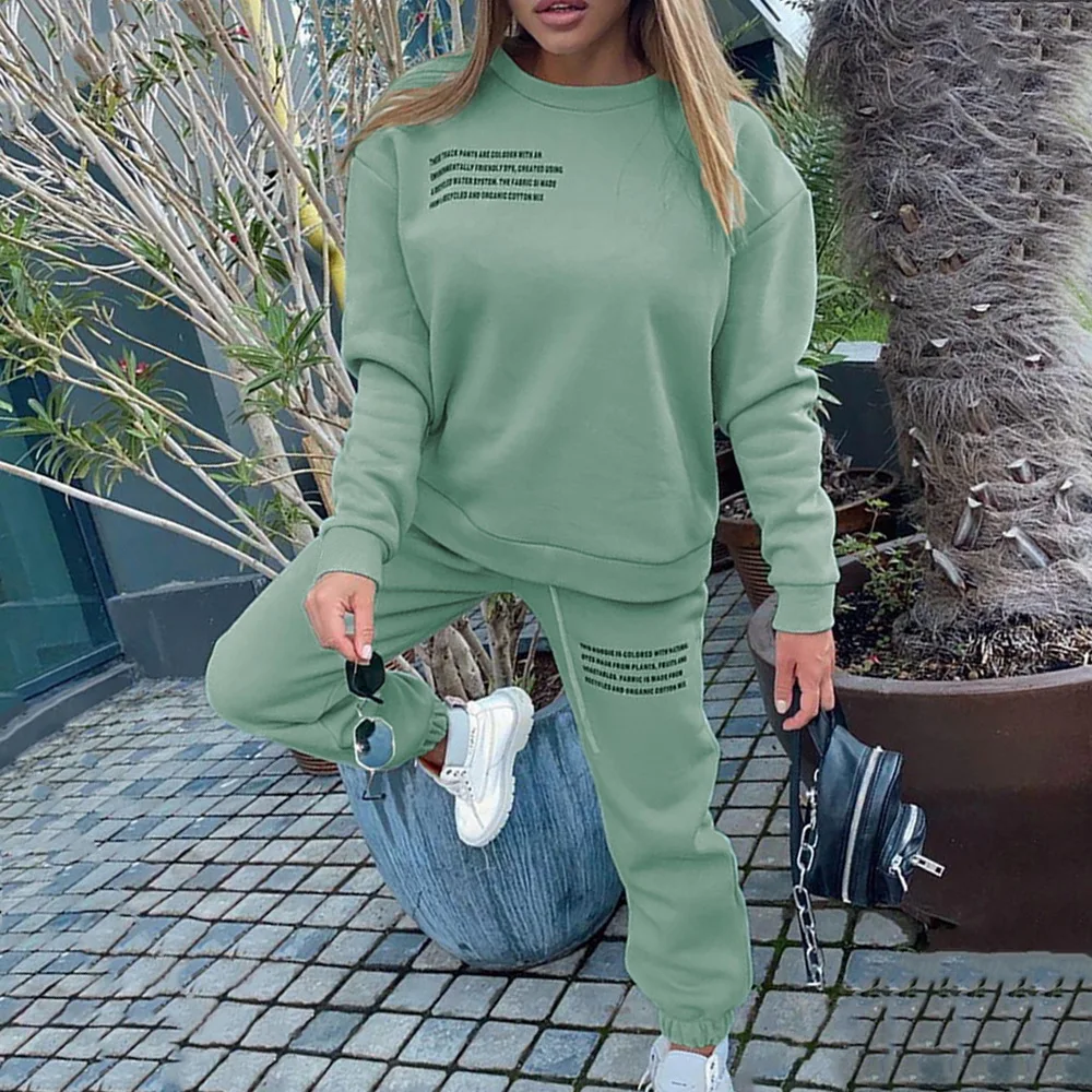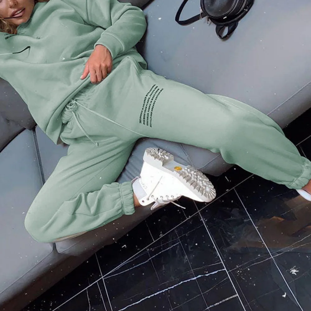 Спортивный костюм из двух предметов с надписью, Женский Повседневный свитшот, штаны с высокой талией, спортивные костюмы, женские демисезонные дамские комплекты 2021