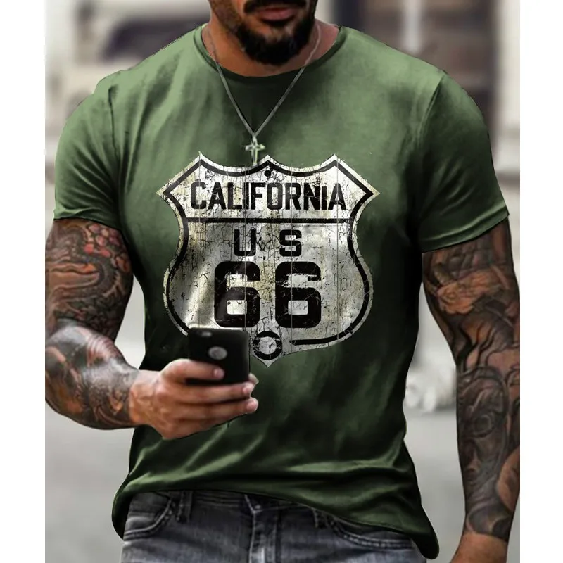 Мужская футболка с коротким рукавом Route 66, летняя футболка больш...