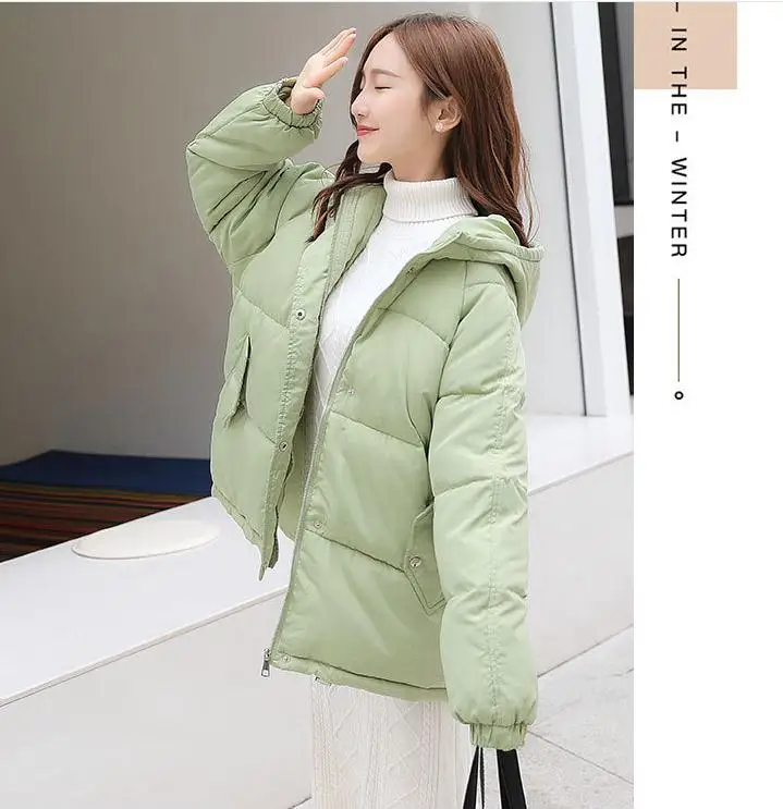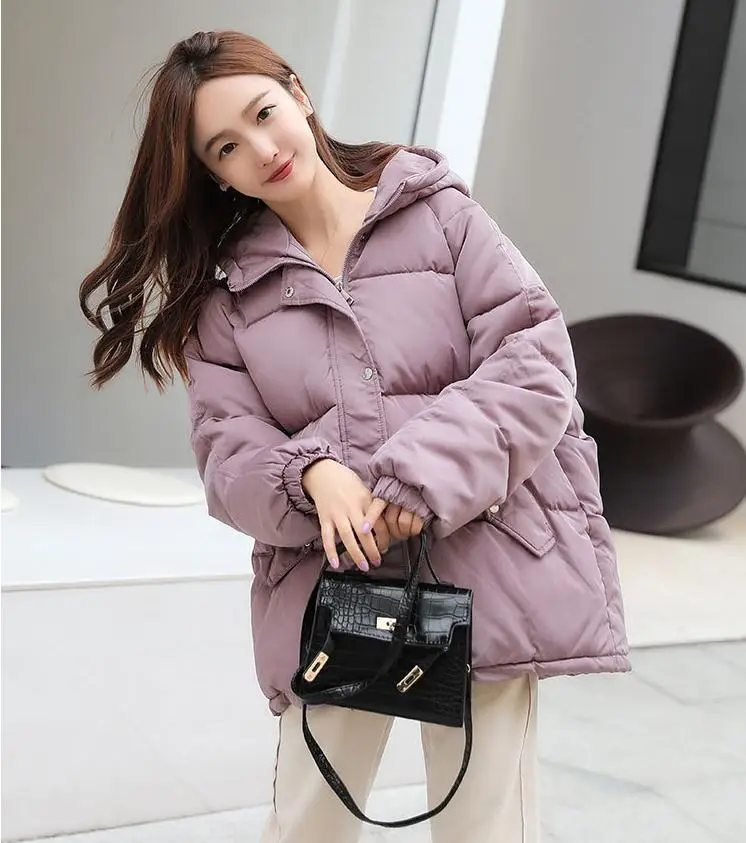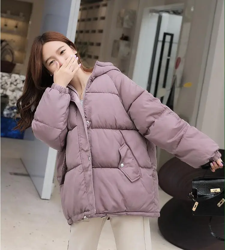 Пуховик женский зимний, осенний, свободный, с капюшоном, однотонный, K1452