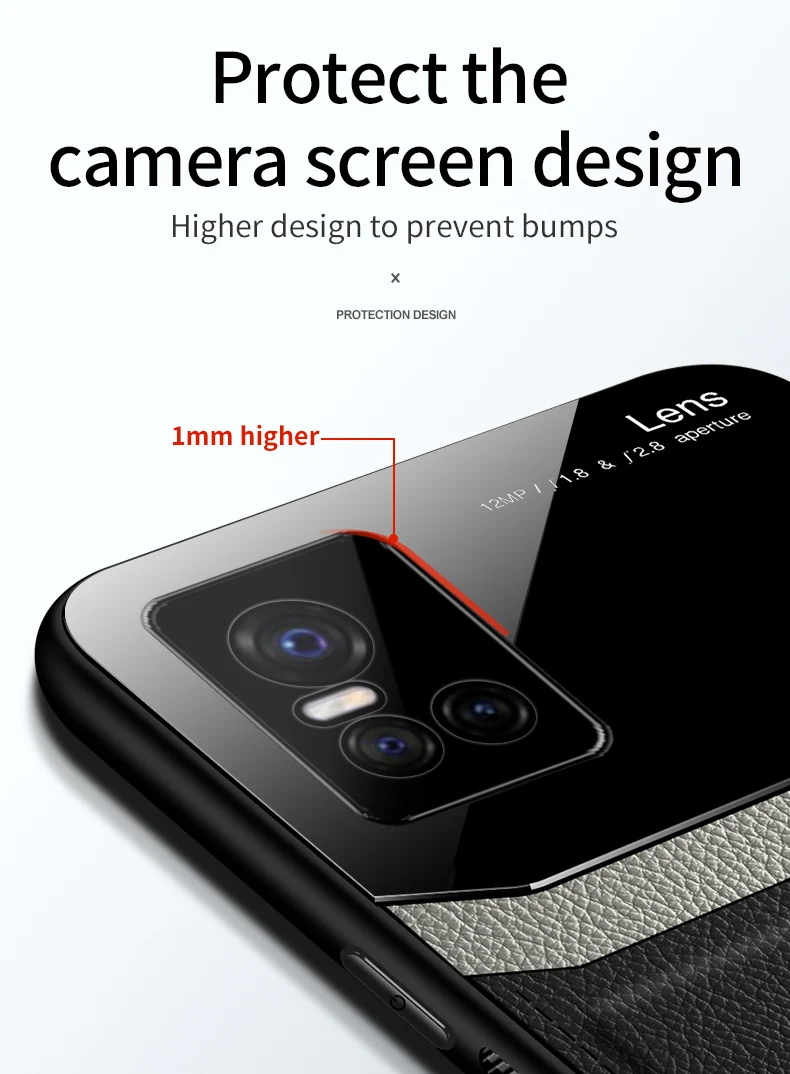 Чехол для VIVO X70 V2133A, противоударный кожаный чехол со стеклянн...