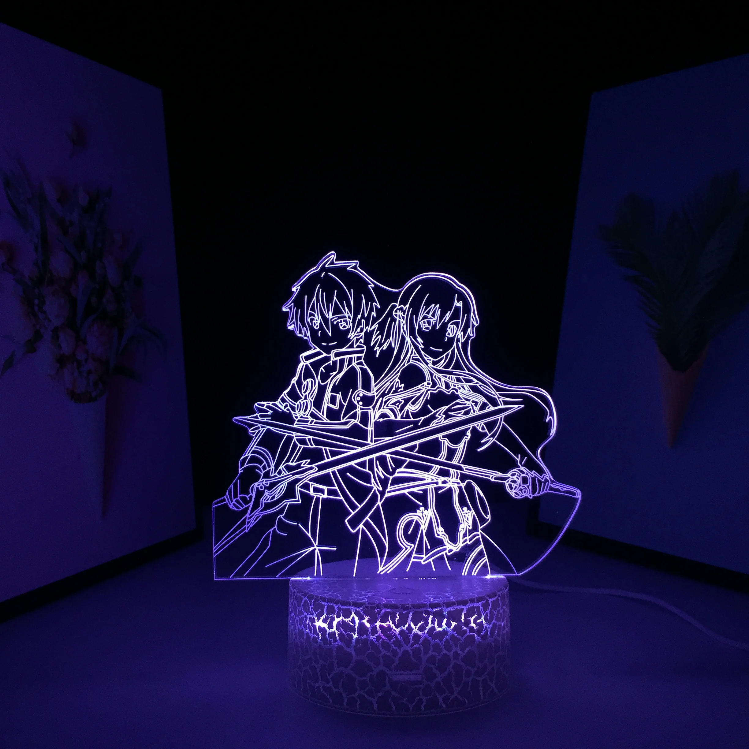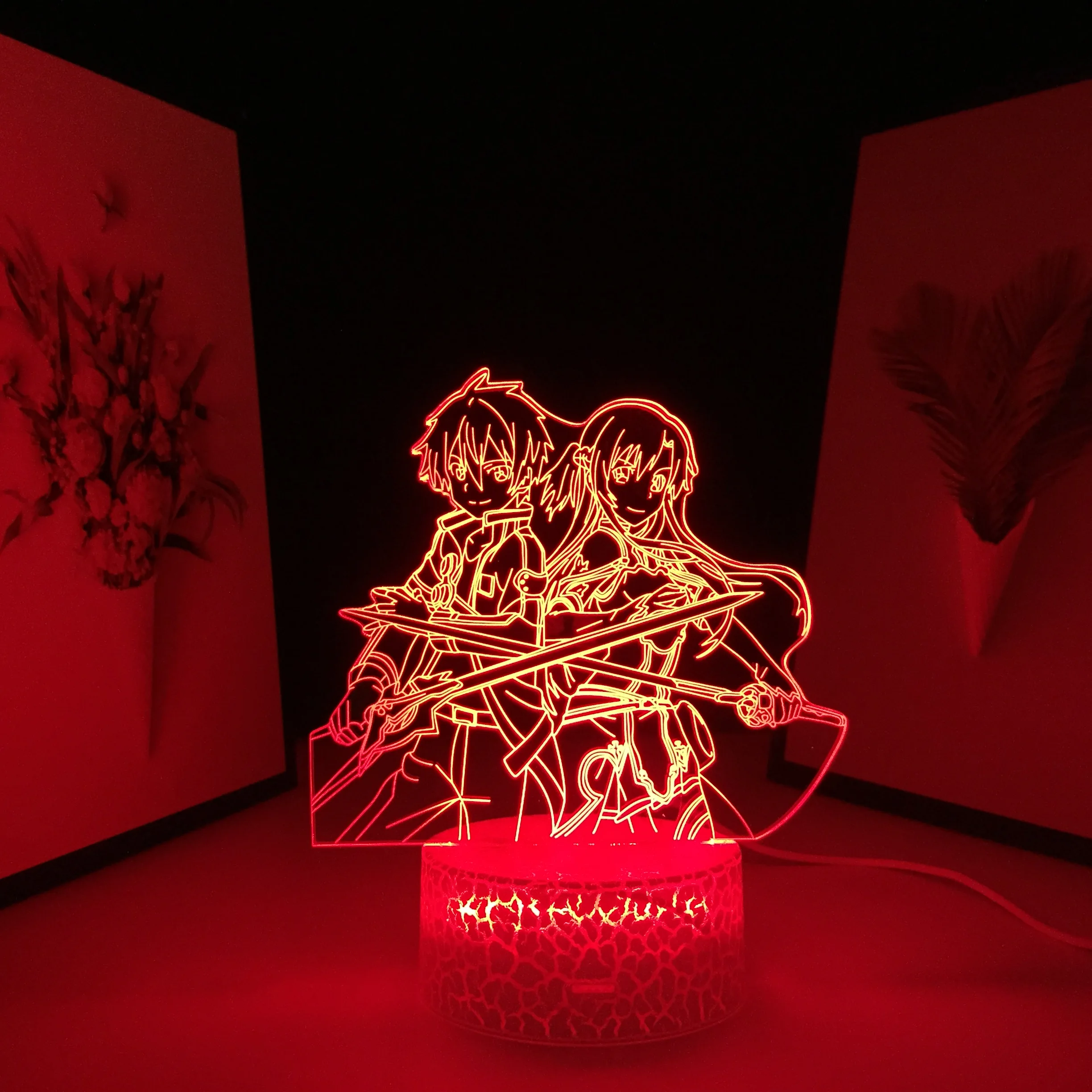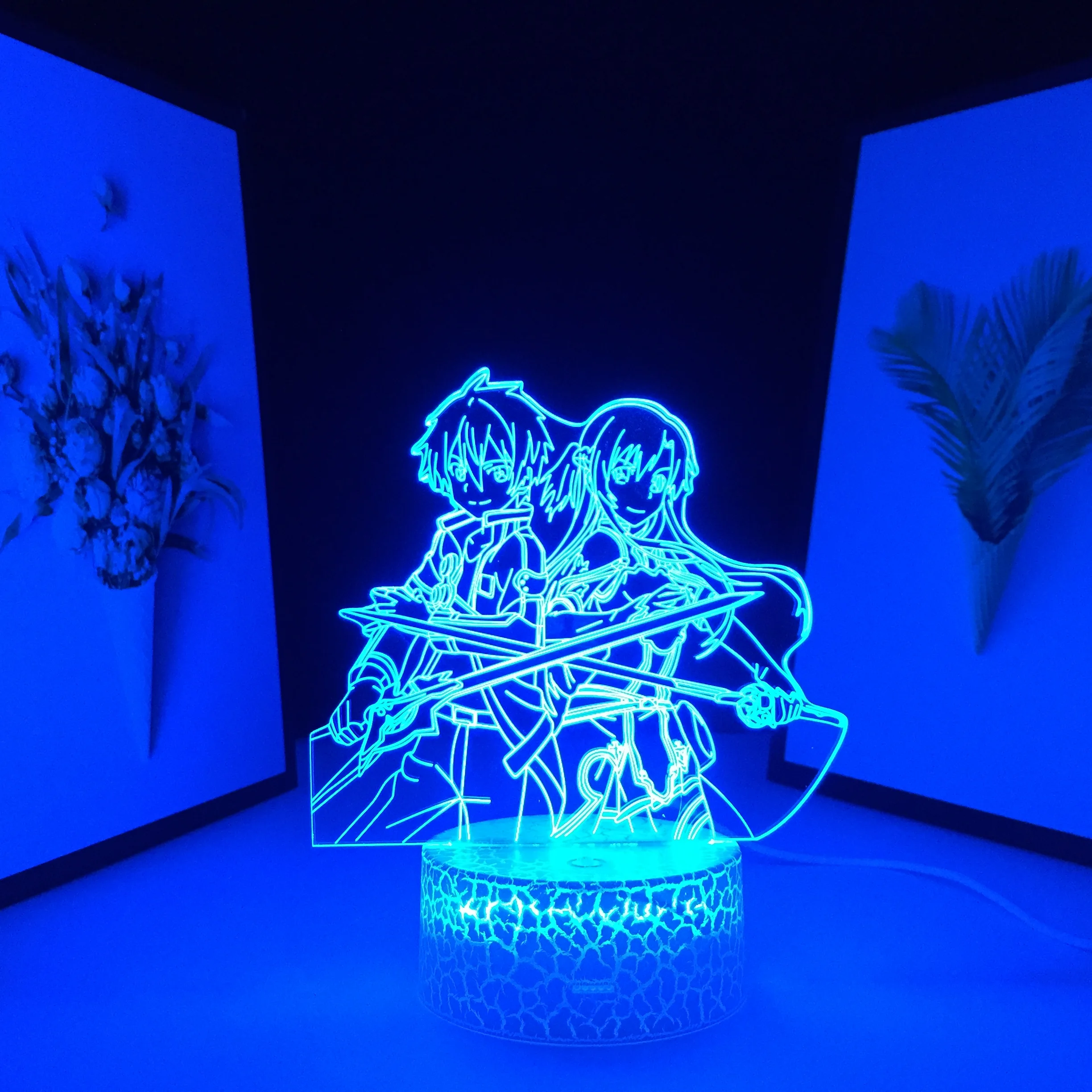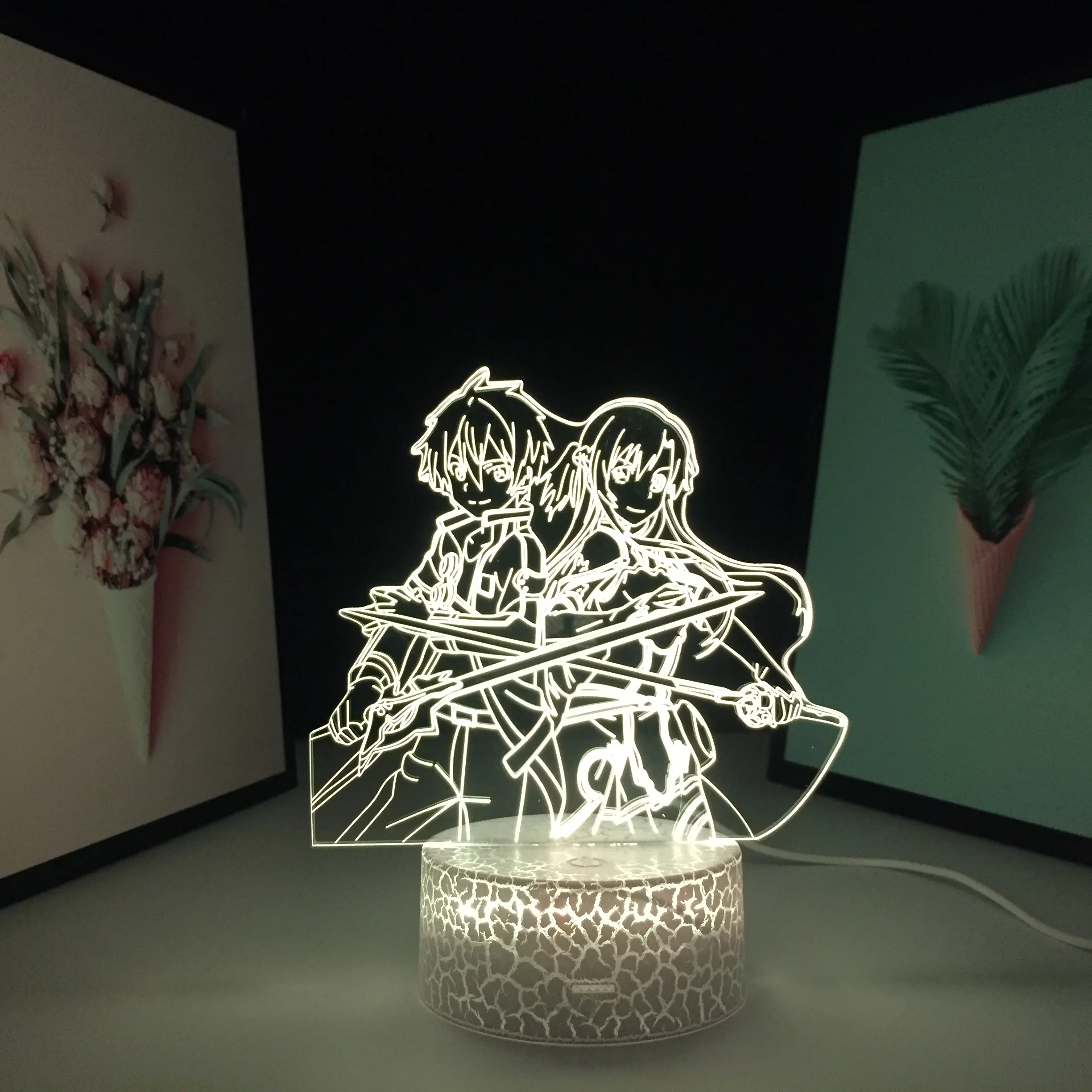 Настольная лампа SAO с дистанционным управлением, светодиодный ночсветильник 3D в стиле аниме, с изображением меча онлайн, Kirito и Asuna, для подарка на день рождения, ночсветильник для украшения спальни