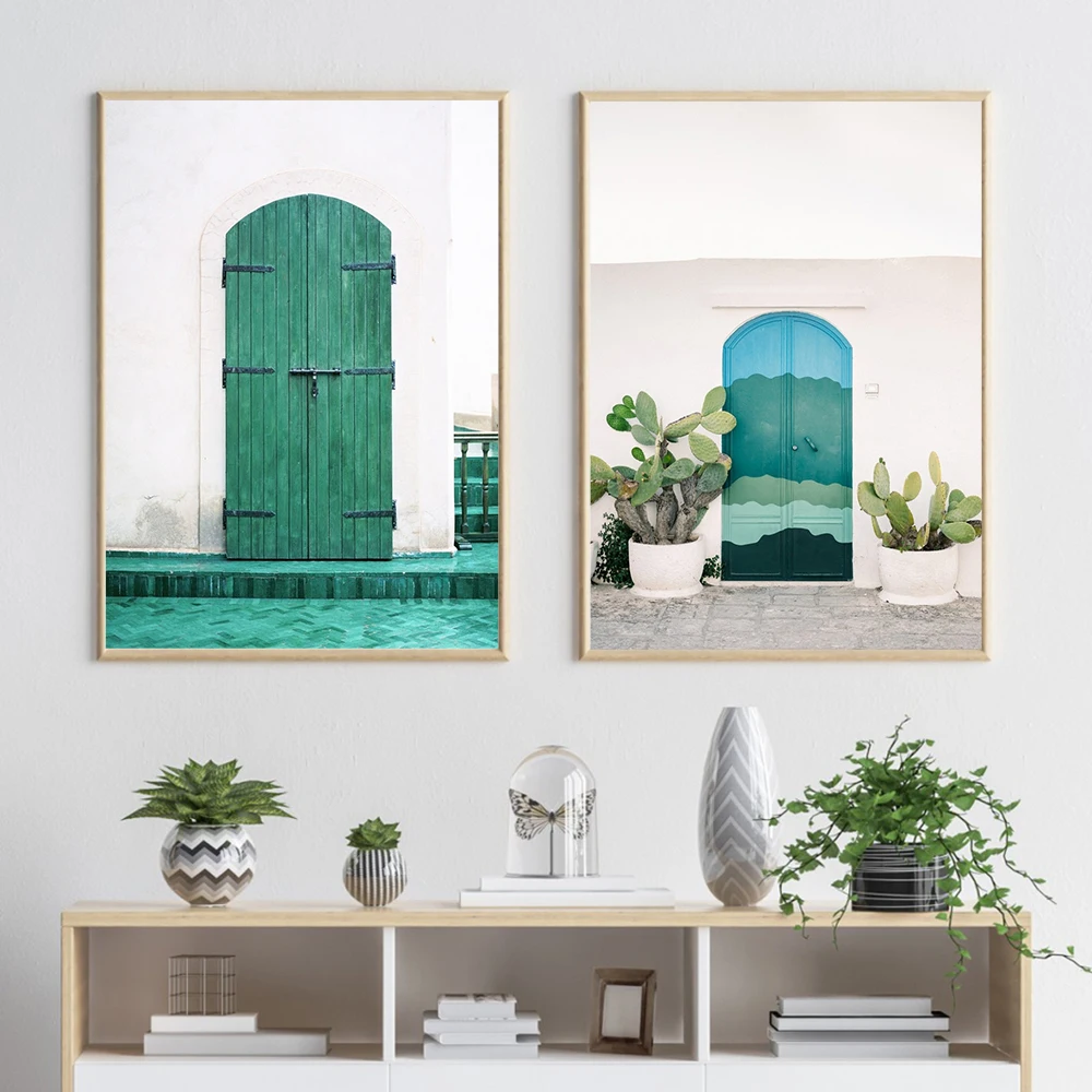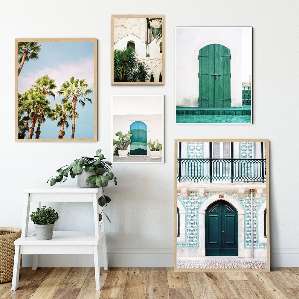 Скандинавская Настенная картина, Лиссабон, Португалия, холст, живопись, современная синяя дверь, Зеленая дверь, Постер и печать для декора гостиной