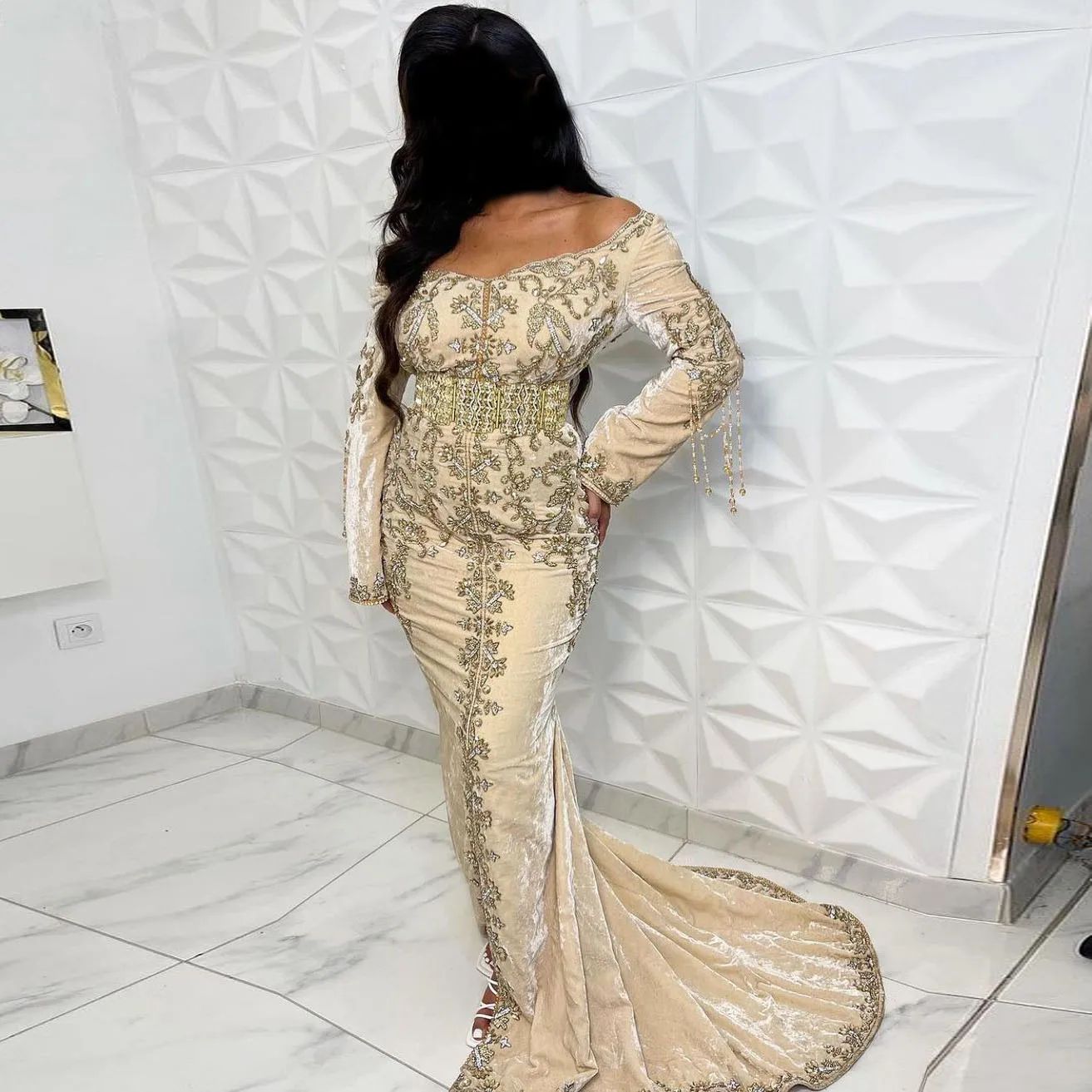 Белое элегантное марокканское вечернее платье в пол, платье-Русалка с открытыми плечами и аппликацией, мусульманское платье для выпускного вечера, женское