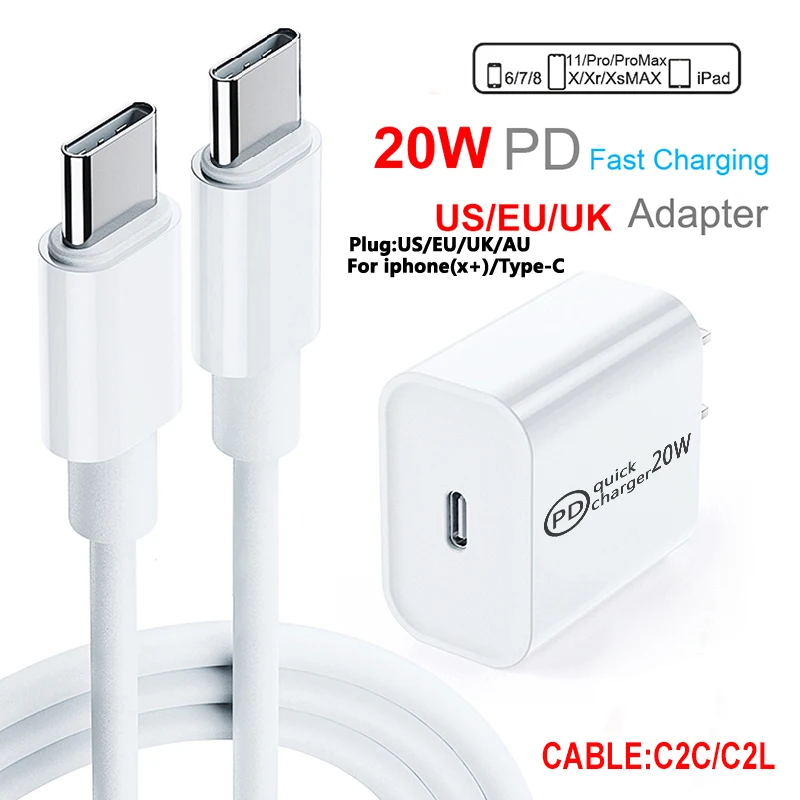 Зарядное устройство для iPhone, 20 Вт, с евровилкойамериканской вилкой