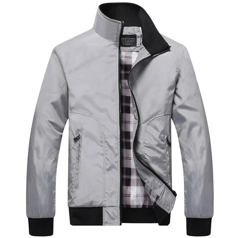 Мужская зимняя куртка, однотонная куртка на молнии с воротником-стойкой и карманами, мужская куртка-пилот, простые повседневные мужские теплые куртки