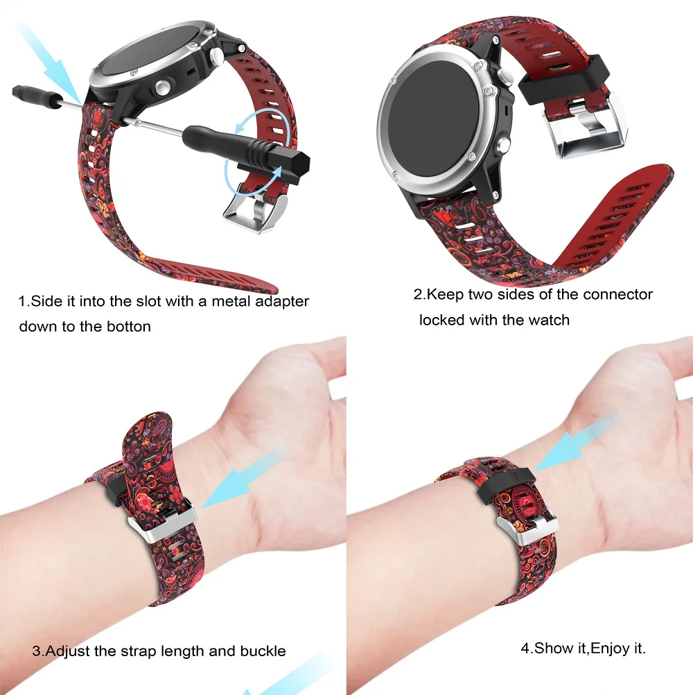 YAYUU 26 мм спортивный ремешок для наручных часов Garmin Fenix 33 HR5X быстросъемный браслет с цветочным силиконовым принтом сменный ремешок для часов