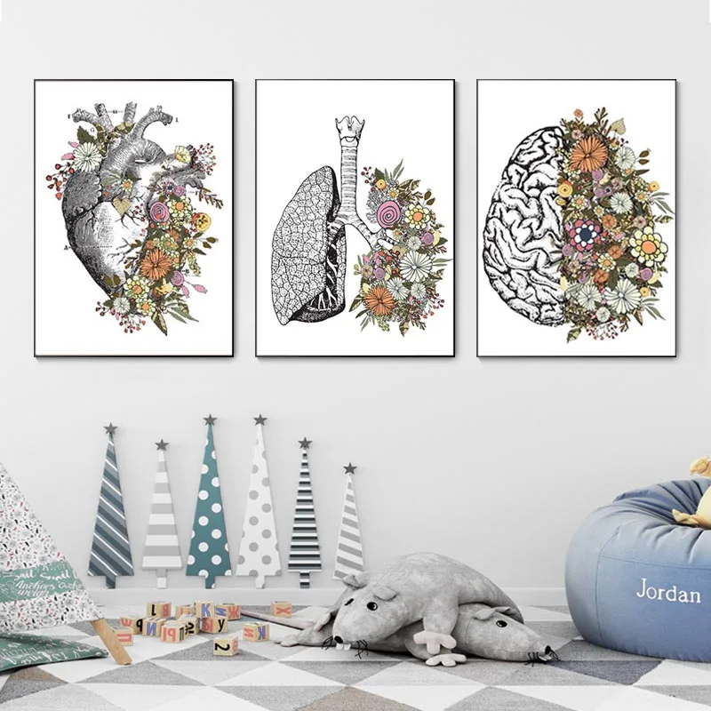 Абстрактная Картина на холсте с изображением сердца и мозга, цветной цветок, современный плакат и принты для гостиной, Настенная декоративная картина