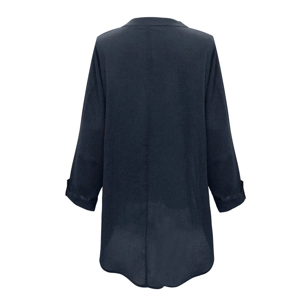 Блузка Женская Асимметричная с длинным рукавом и V-образным вырезом
