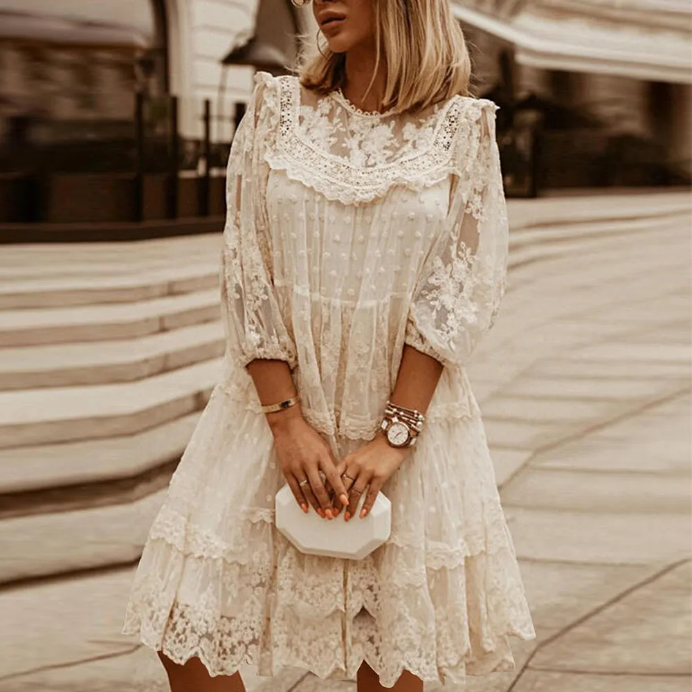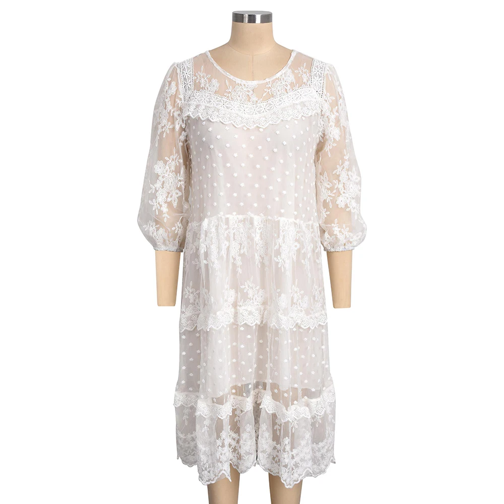 Женское длинное кружевное платье, повседневные платья из прозрачной сетки, Женский жаккардовый с длинным рукавом, размера плюс