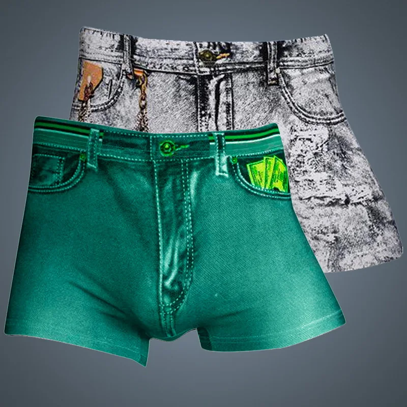 Боксеры мужские джинсовые, дышащие хлопковые шорты, высокоэластичные, с принтом, мягкое тонкое нижнее белье