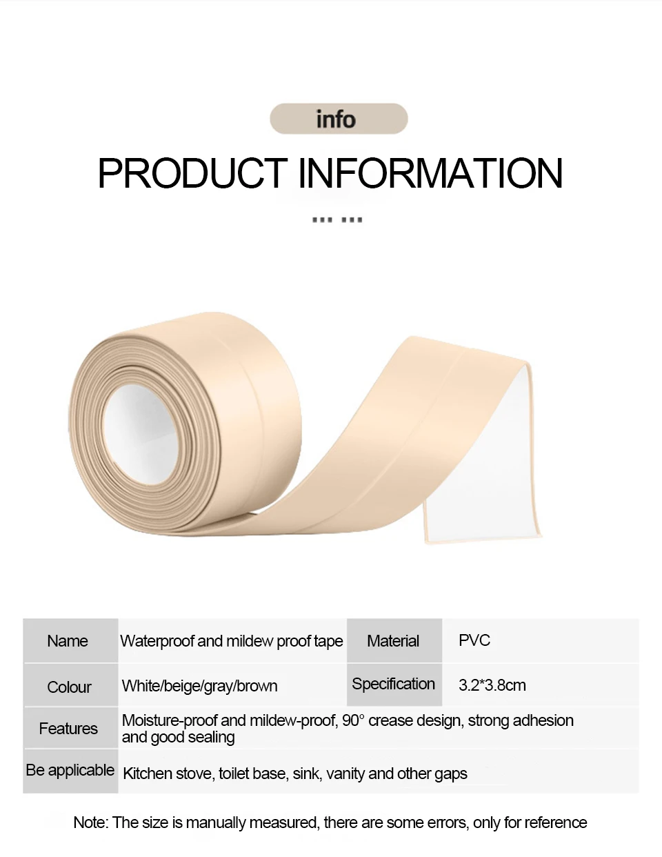 Ремонтная водонепроницаемая лента против плесениВодонепроницаемая и маслостойкая лента с агрессивной адгезией и высокой прочностью на растяжениеСамоклеющийся рулон для легкого нанесенияПридает законченный профессиональный видПросто очистите и нажмите на месте без инструментов или грязной очисткиСамогерметизация и самовамальгамирование, водонепроницаемость и термостойкостьЦвет: белый/серый/коричневый/желтыйРазмеры: 3,8 см * 3,2 м/2,2 см * 3,2 м