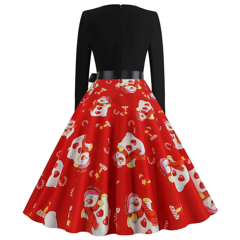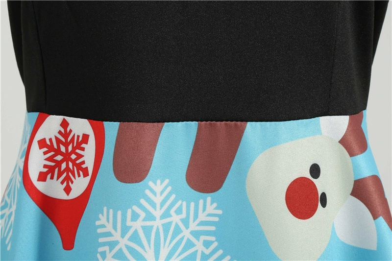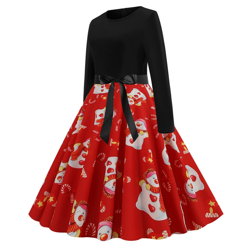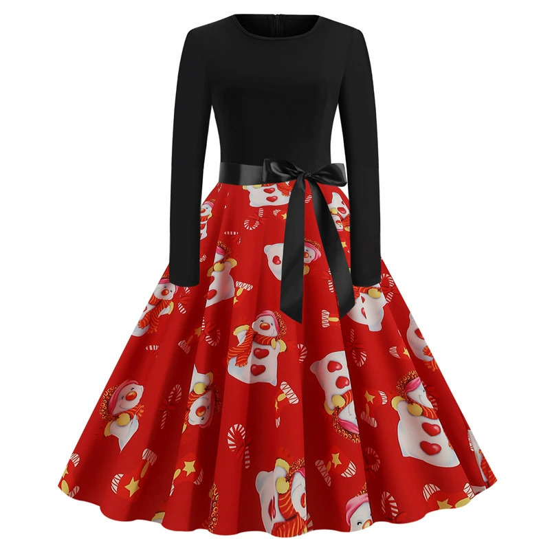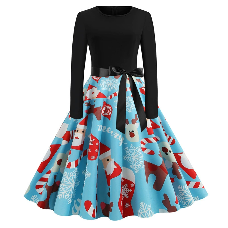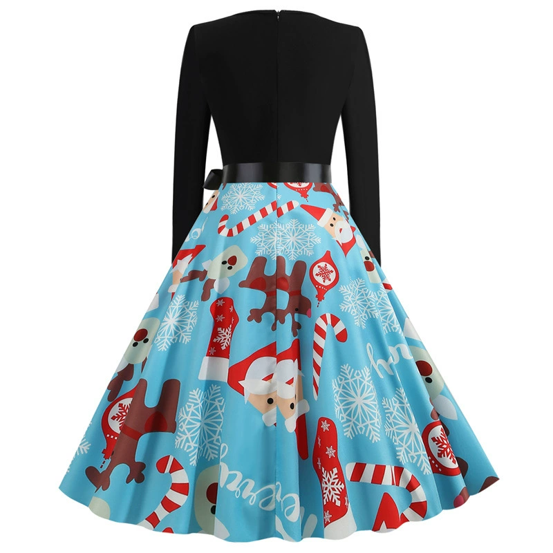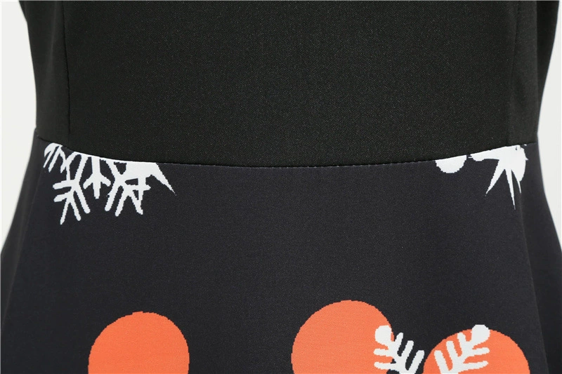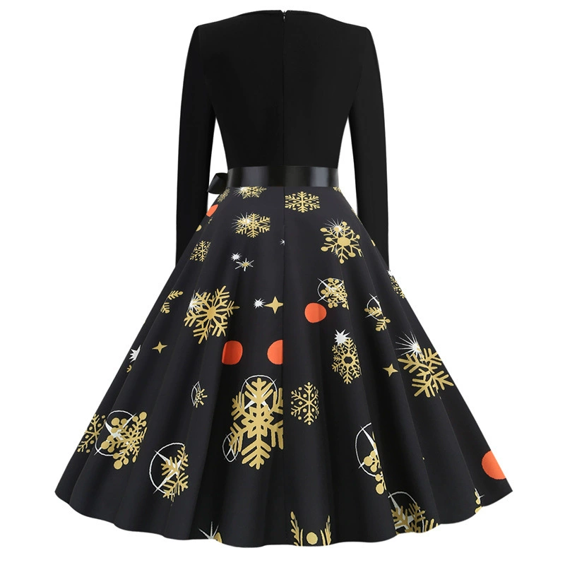 Женское платье с длинным рукавом junxi WAN, Черное вечернее платье с круглым вырезом, с длинными рукавами, с рождественским принтом, зима 2019