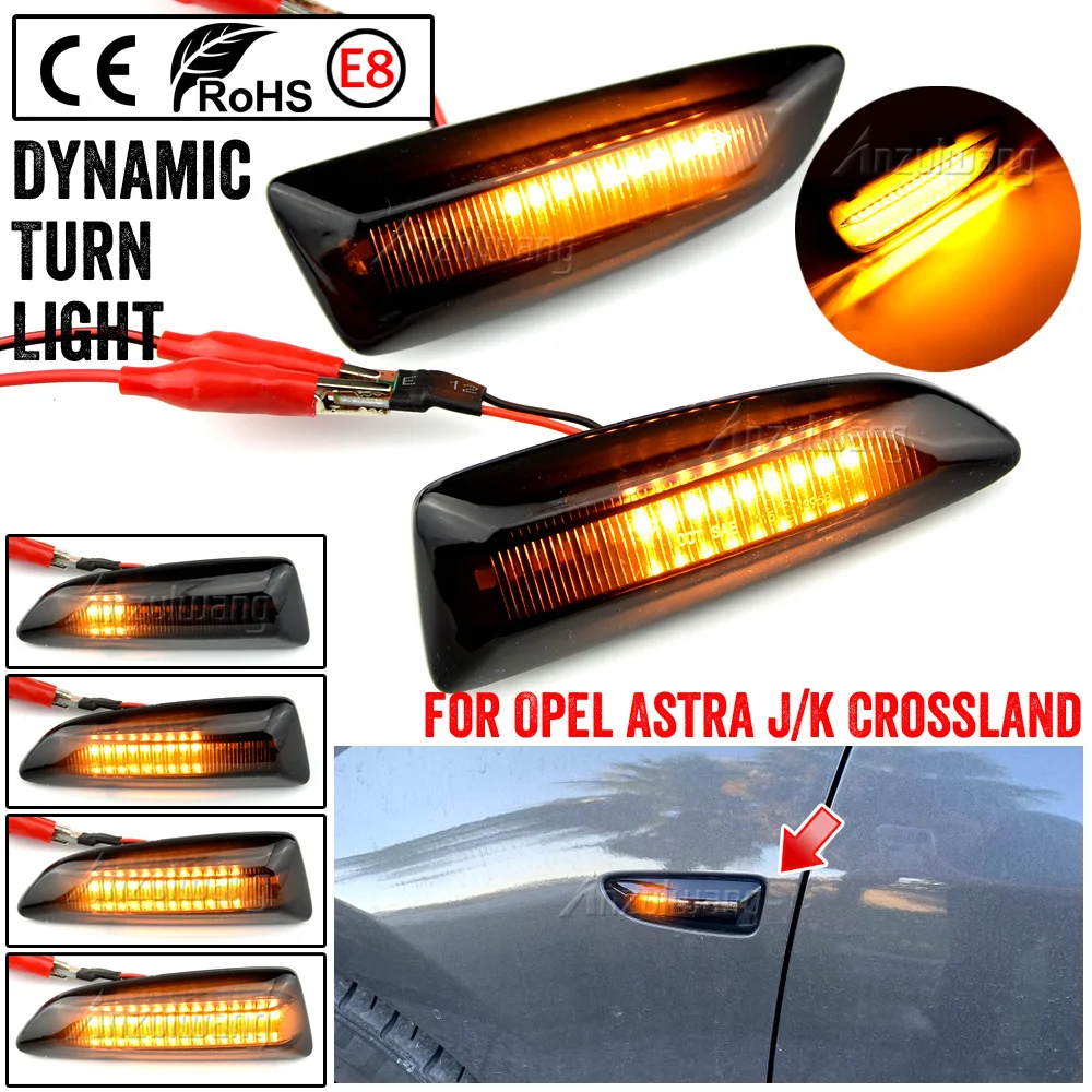 2 шт., светодиодный Динамический указатель поворота, боковой габаритный фонарь для Opel, для Vauxhall, Astra J, K, Crossland, X, Grandland, Insignia B, Zafira, C