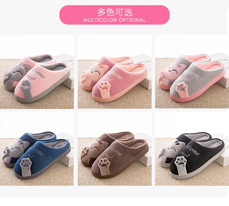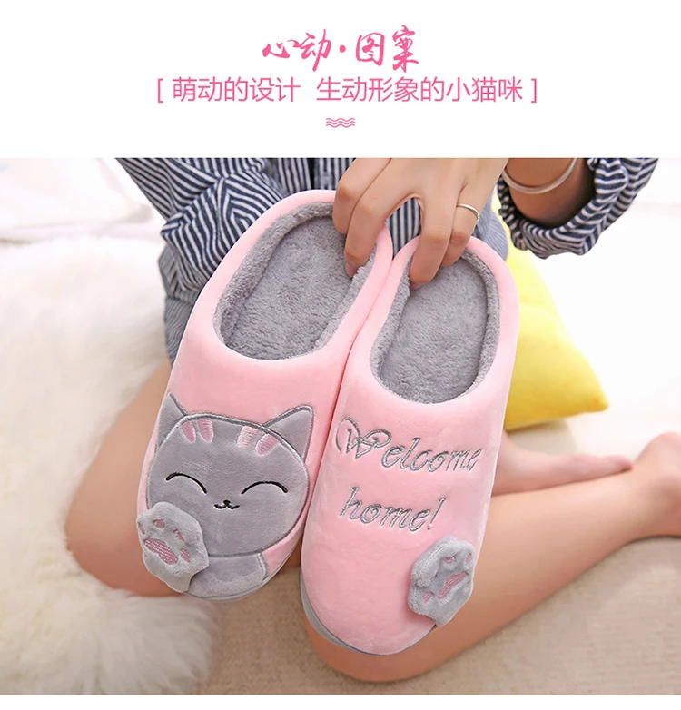 Женские зимние домашние тапочки, обувь с мультяшным котом, мягкие з...
