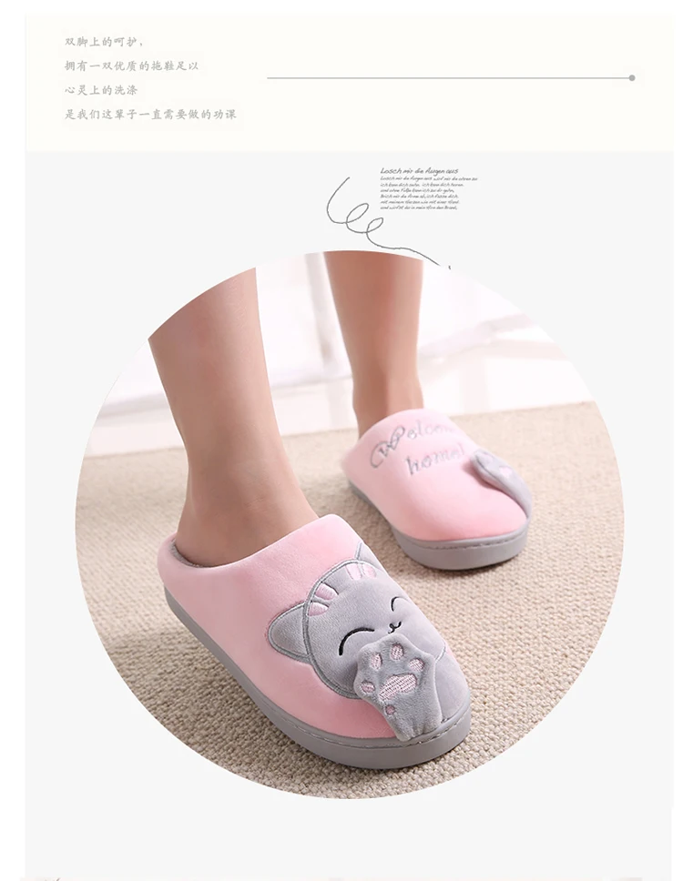 Домашние тапочки для женщин, зимние теплые тапочки с мультяшным кот...