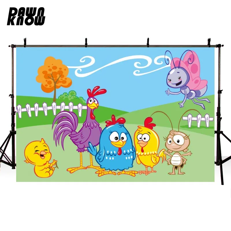 Фон для детской фотосъемки с изображением мультяшных куриц на заказ декорация для детского дня рождения гобелен для фотостудии