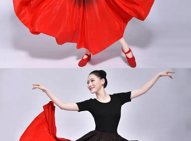Практичное тибетское платье для выступлений, Красная атласная одежда для взрослых средней длины с широкой юбкой, испанская одежда, Цыганская юбка для девушек
