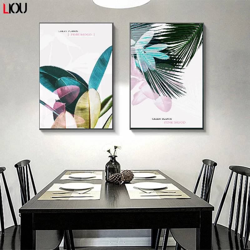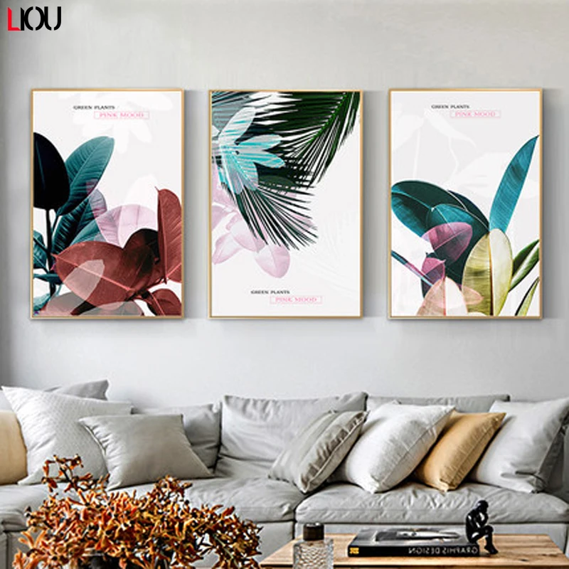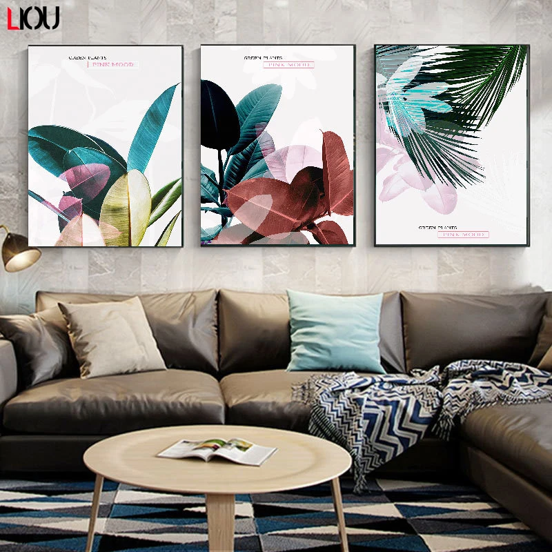 Абстрактный постер на стену, синий, зеленый, желтый, золотой лист, растение, цветок, картина, современные картины в скандинавском стиле для гостиной
