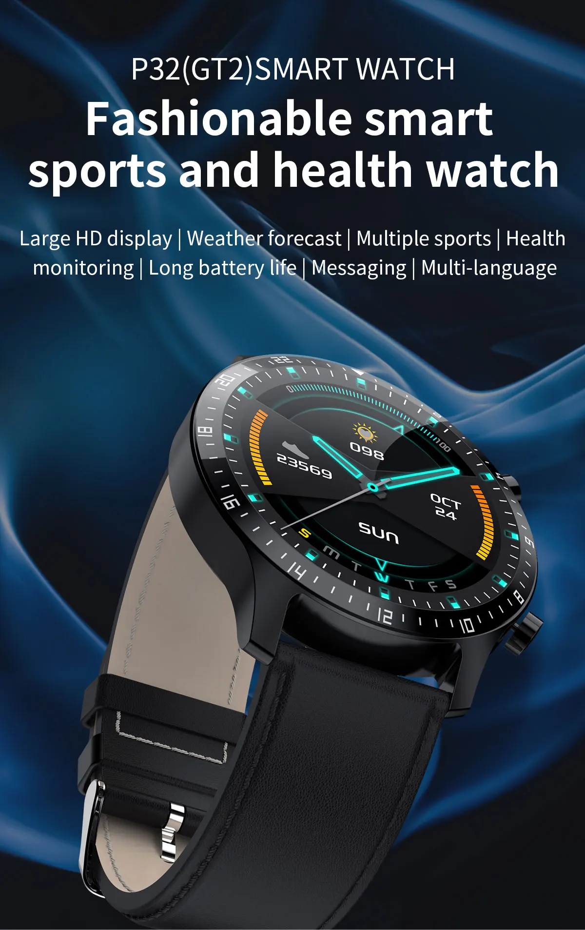 Смарт-часы P32 с HD-экраном для мужчин с полным сенсорным экраном, монитор сердечного ритма для измерения артериального давления, женские фитнес-часы, SmartWatch GT2, водонепроницаемые, для IOS, Android