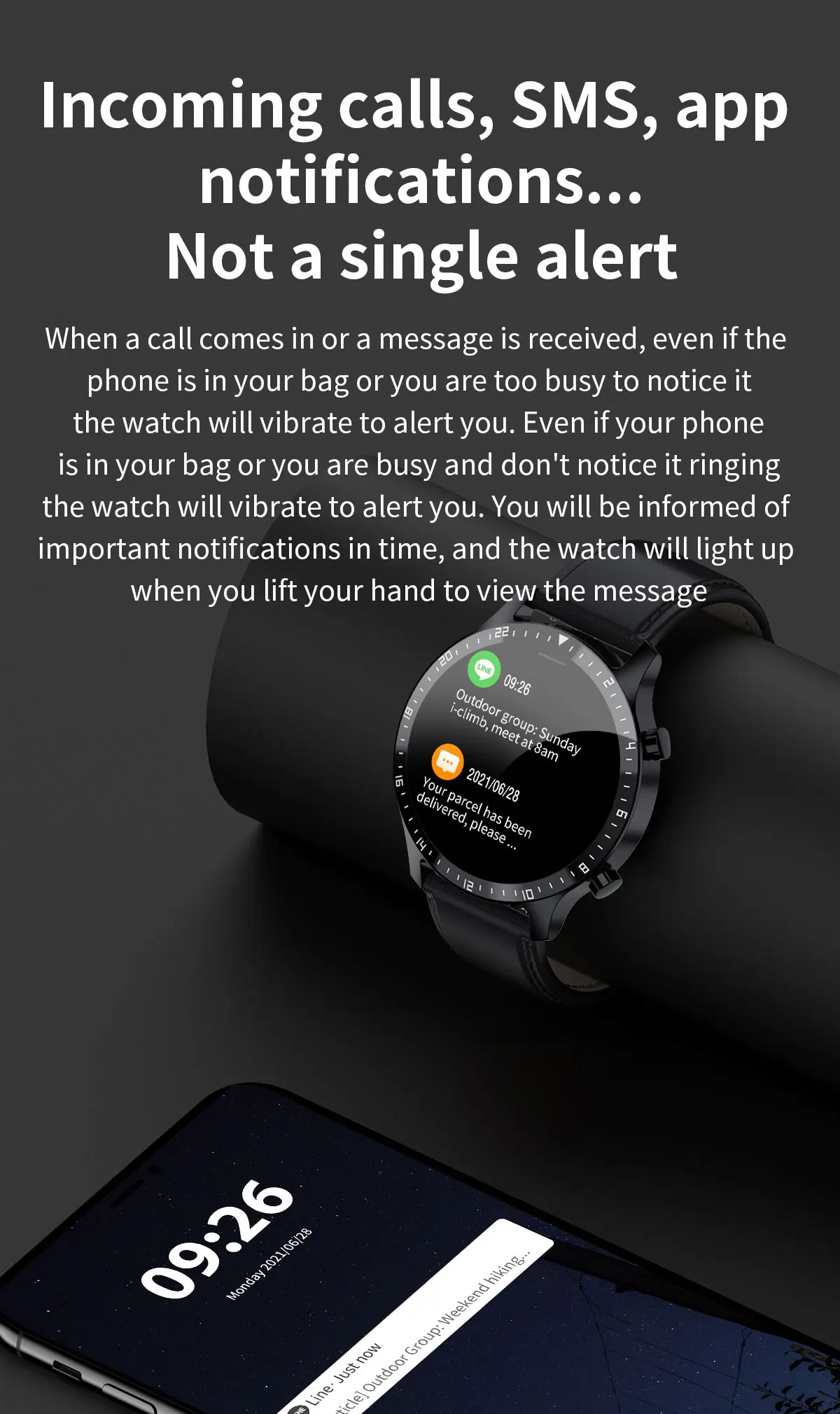 Notify when you receive a notification on your mobile phone, calculate the number of steps, blood pressure, pulse, date, and time.
