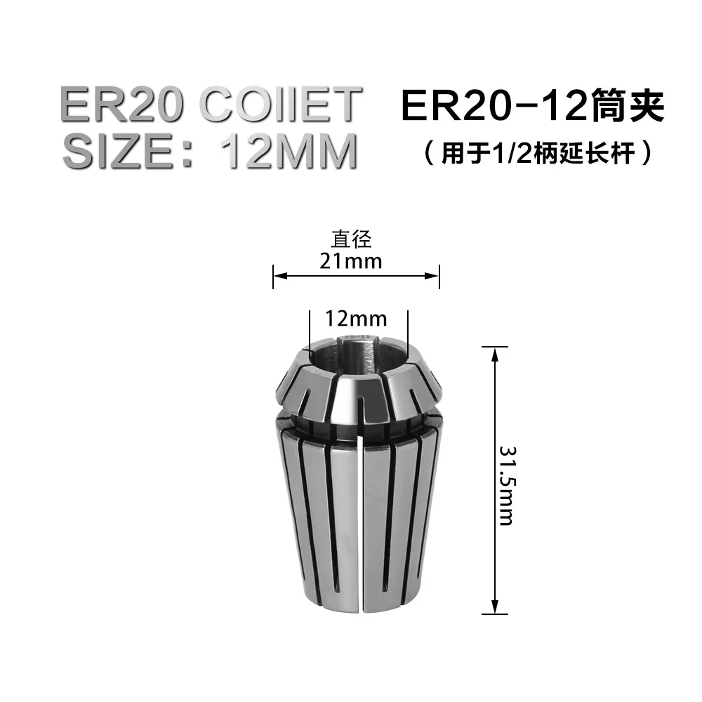 Переходник ER16 ER20 с хвостовиком 14 дюйма, 8 мм, 12 дюйма, Удлинительный стержень, цанга, удлинитель для гравировального станка, фреза для дерева