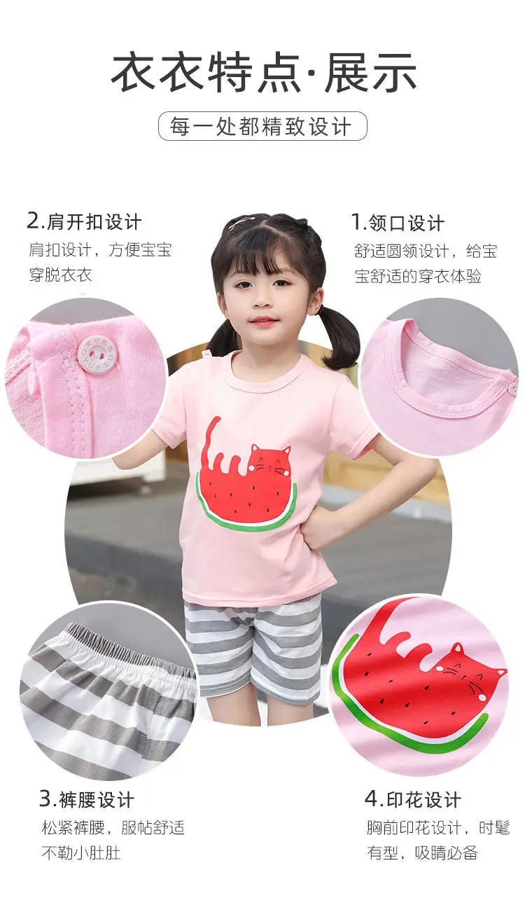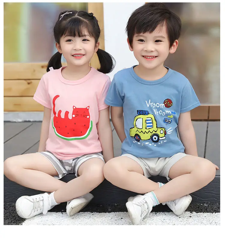 Детский комплект с короткими рукавами; Летняя хлопковая Футболка дл...