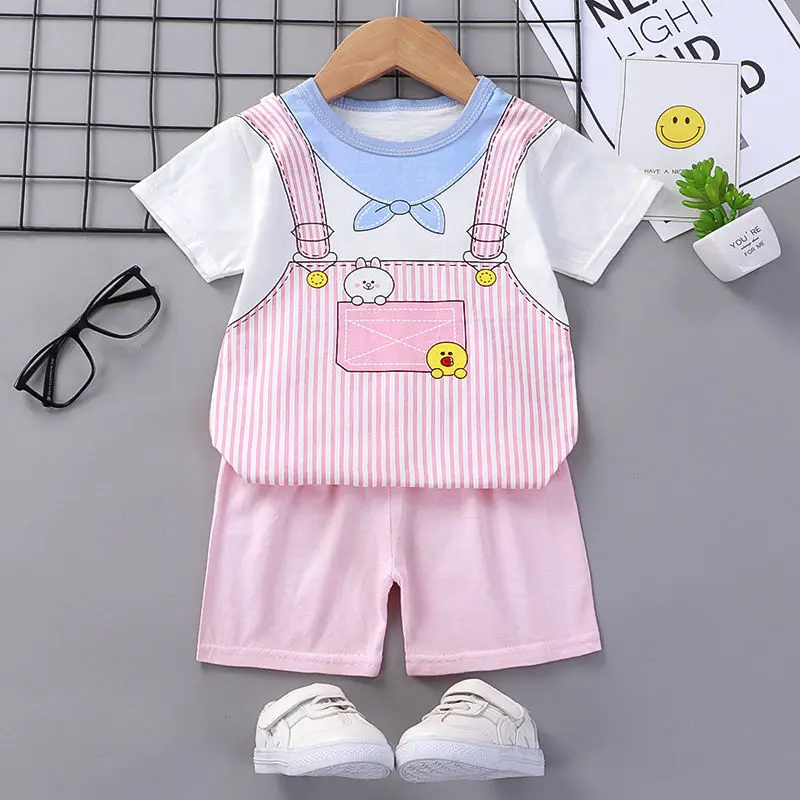 Комплект одежды для мальчиков и девочек, хлопковая футболка и шорты...