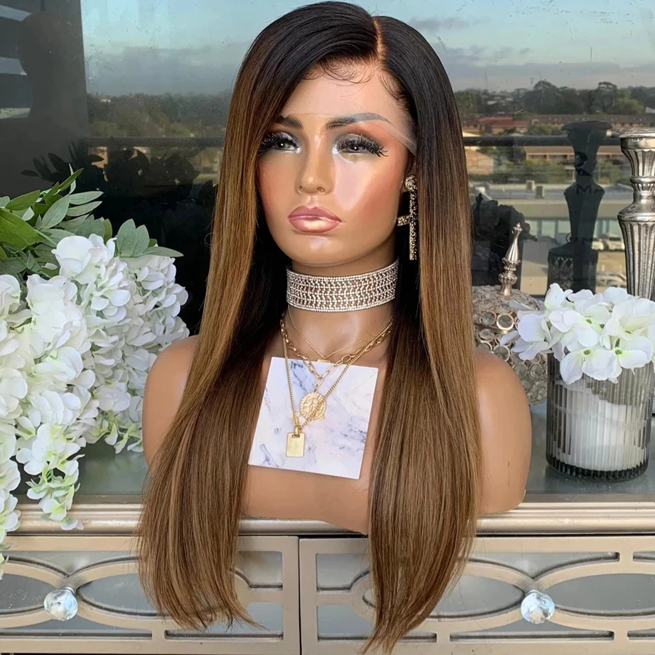 1B 27 прямой парик на сетке спереди, синтетические натуральные волосы, косплей, 26 дюймов, термостойкие, средняя часть, HD, на сетке спереди, al парики для женщин