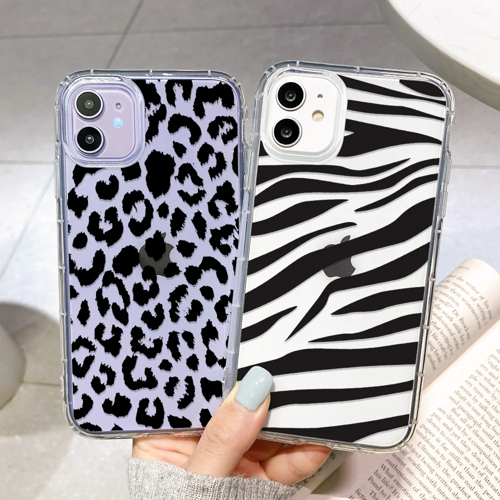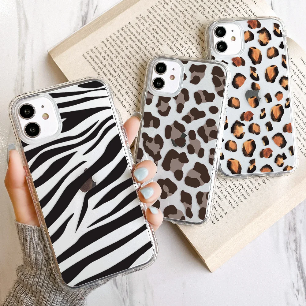Чехол с леопардовым рисунком для iPhone 11 12 Pro Max, прозрачный ч...