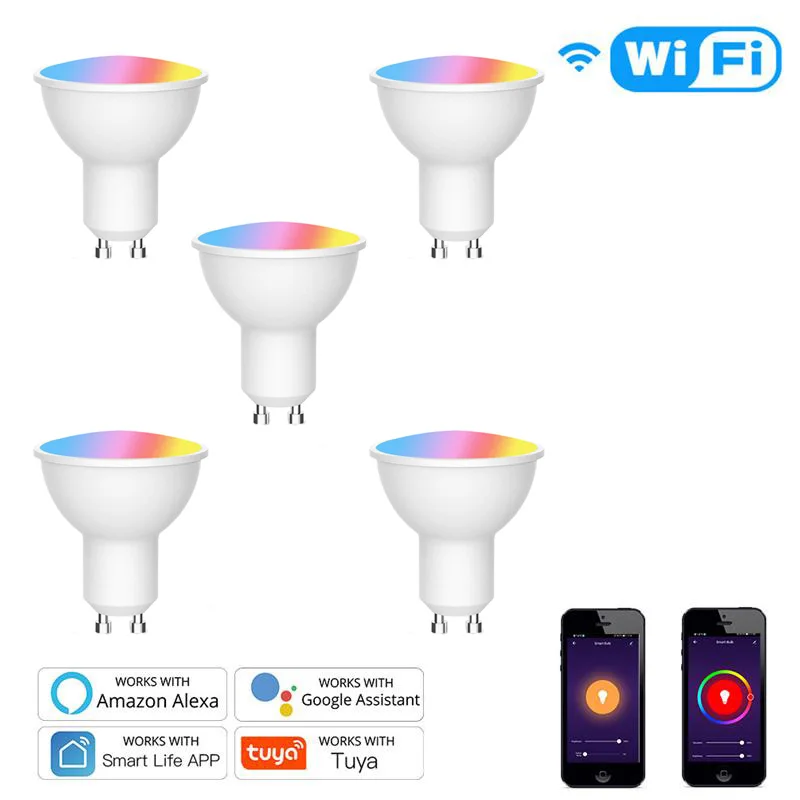 Умная Светодиодная лампа GU10, потолочный светильник с дистанционным управлением, Wi-Fi, голосовым управлением, поддержкой Amazon Alexa Google Home Smart Life