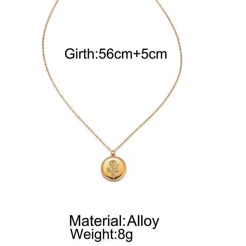Женское круглое ожерелье с подвеской в виде цветка розы из сплава Золотое серебряное ожерелье-чокер, колье с монетами, ювелирные изделия, подарок
