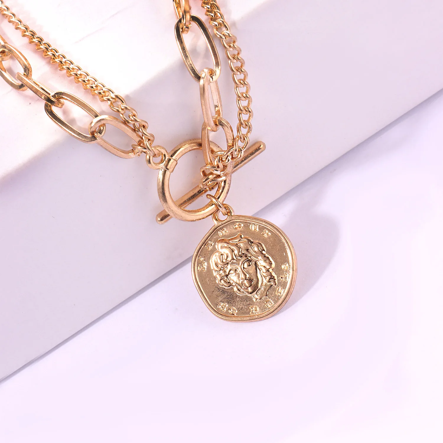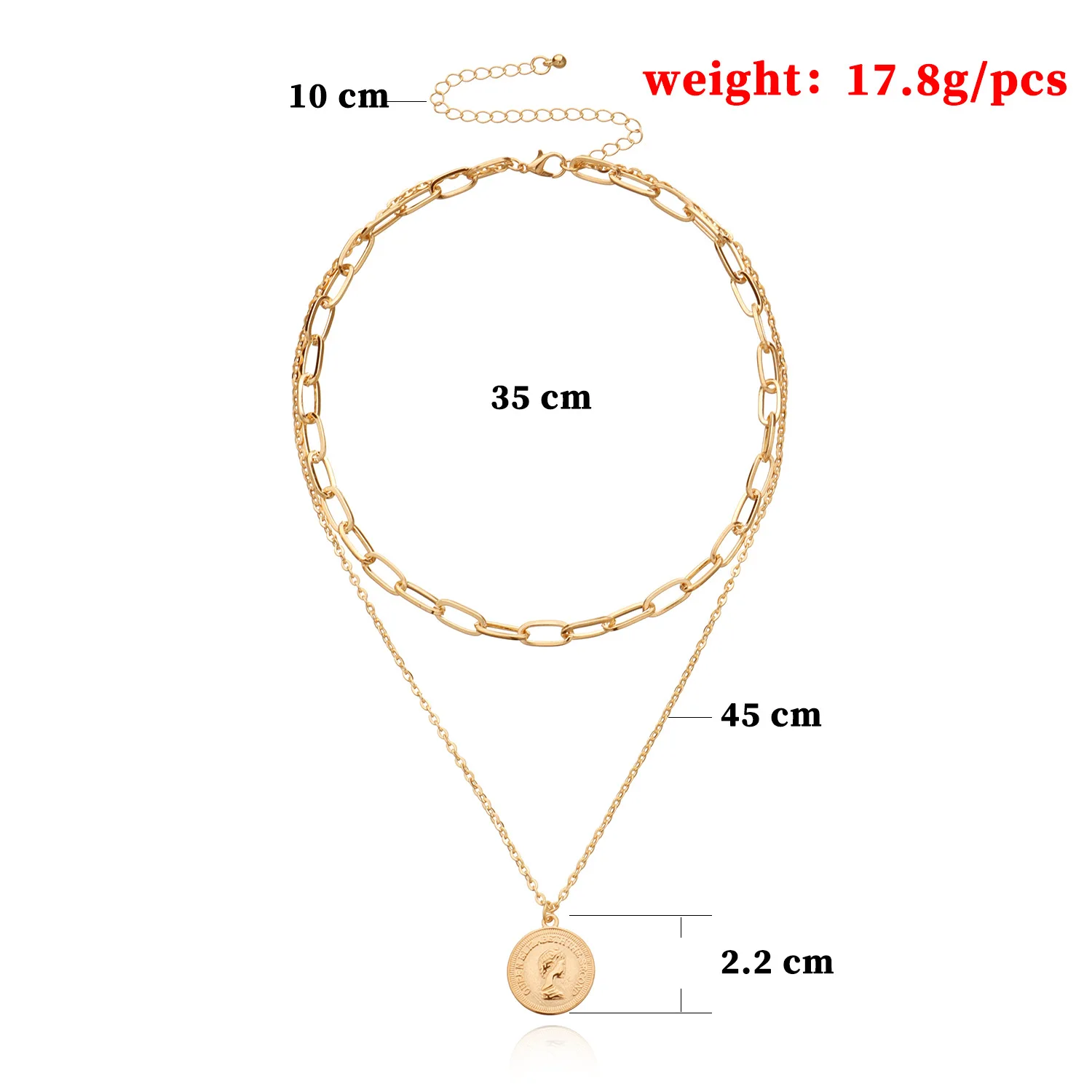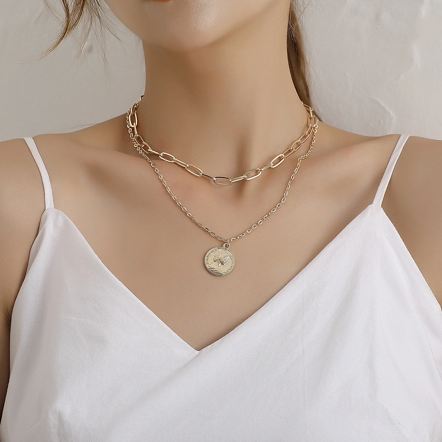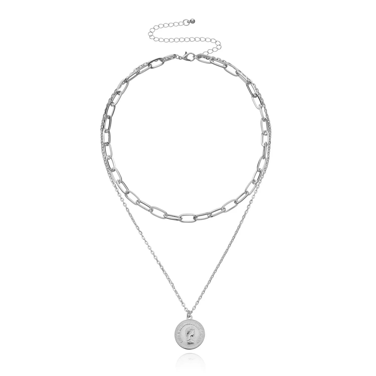 Женское Ожерелье с кулоном, винтажное металлическое многослойное ож...