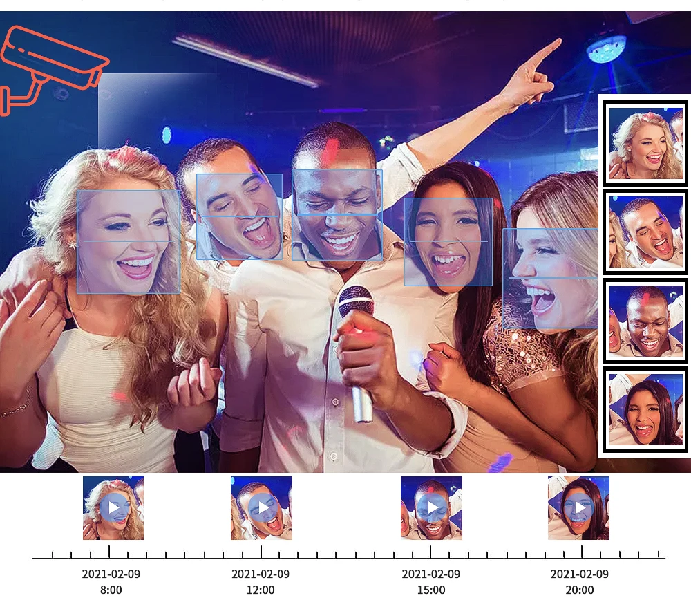 Распознавание лиц, воспроизведение лиц и запись лиц;Быстро фиксирует изображения лица и быстро воспроизводит видео с лица;Распознавание лица: автоматический захват изображений лица;Воспроизведение лиц: интеллектуальное воспроизведение видео с лица, экономия времени, не пропуская каждой детали.