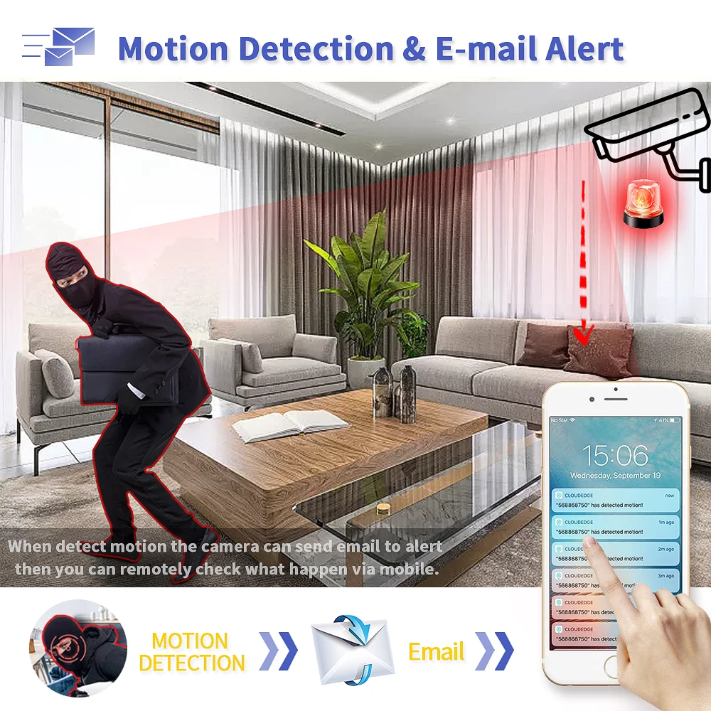Когда вы находитесь на улице или дома, он отправляет оповещения на ваш телефон, как только обнаружит какие-либо движения в зоне наблюдения, чтобы защитить ваш дом. Независимо от того, где вы находитесь, эта камера безопасности станет надежным защитником для вашего дома и позволит вам быть уверенными.
