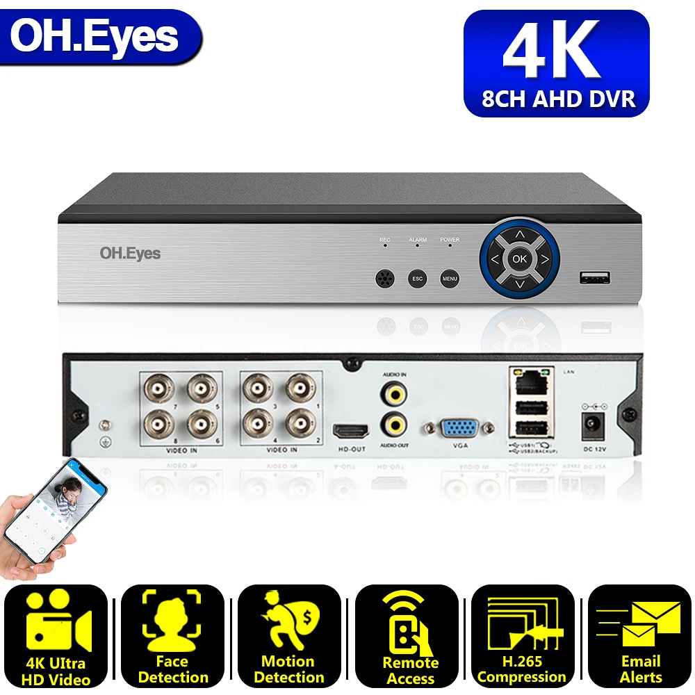 Гибридный видеорегистратор OH.eyes 8CH 4K AHD DVR AI H.265, 8 мегапикселей, NVR, для 2MP 4MP 5MP 8MP AHDTVICVIXVIIP-камер