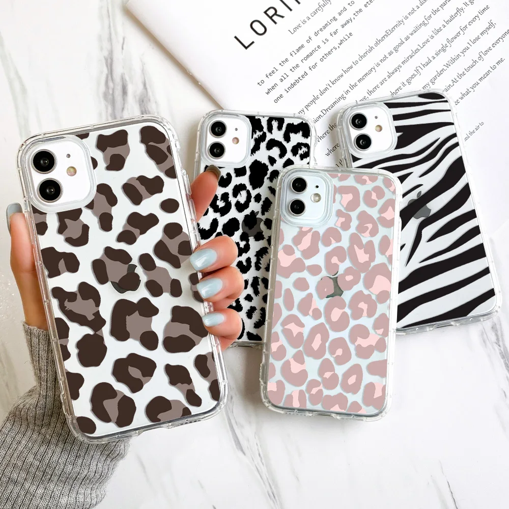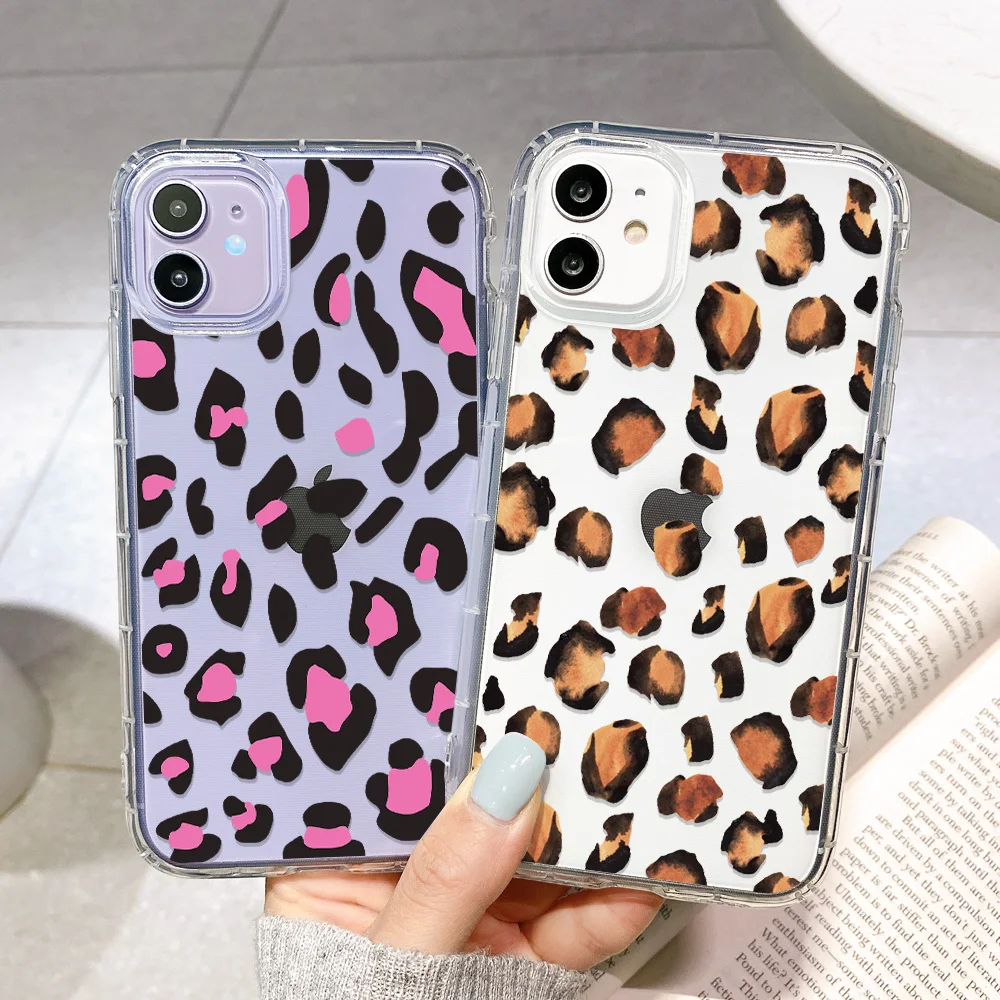 Чехол с леопардовым рисунком для iPhone 11 12 Pro Max, прозрачный ч...