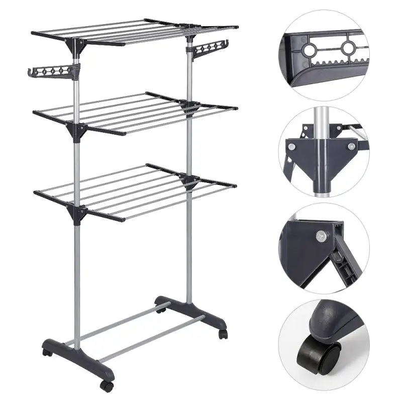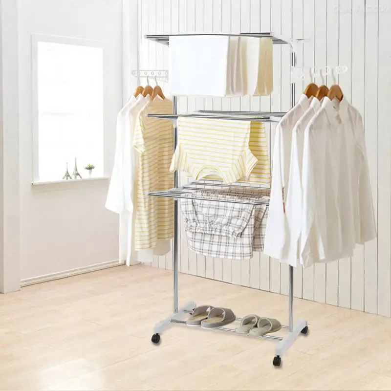 Трехуровневая Складная сушилка для одежды, регулируемые стеллажи из нержавеющей стали для хранения одежды, бытовая сушилка для белья HWC