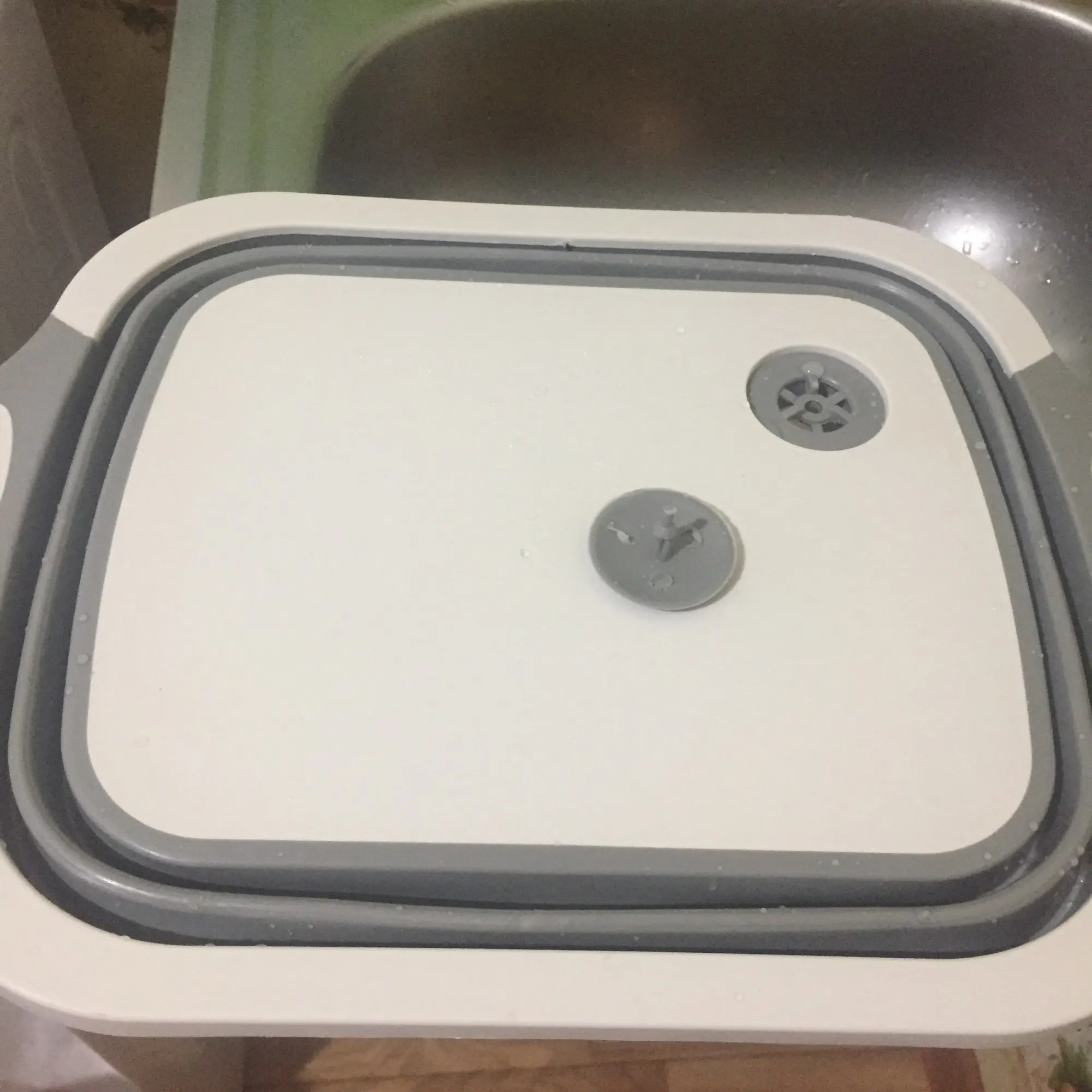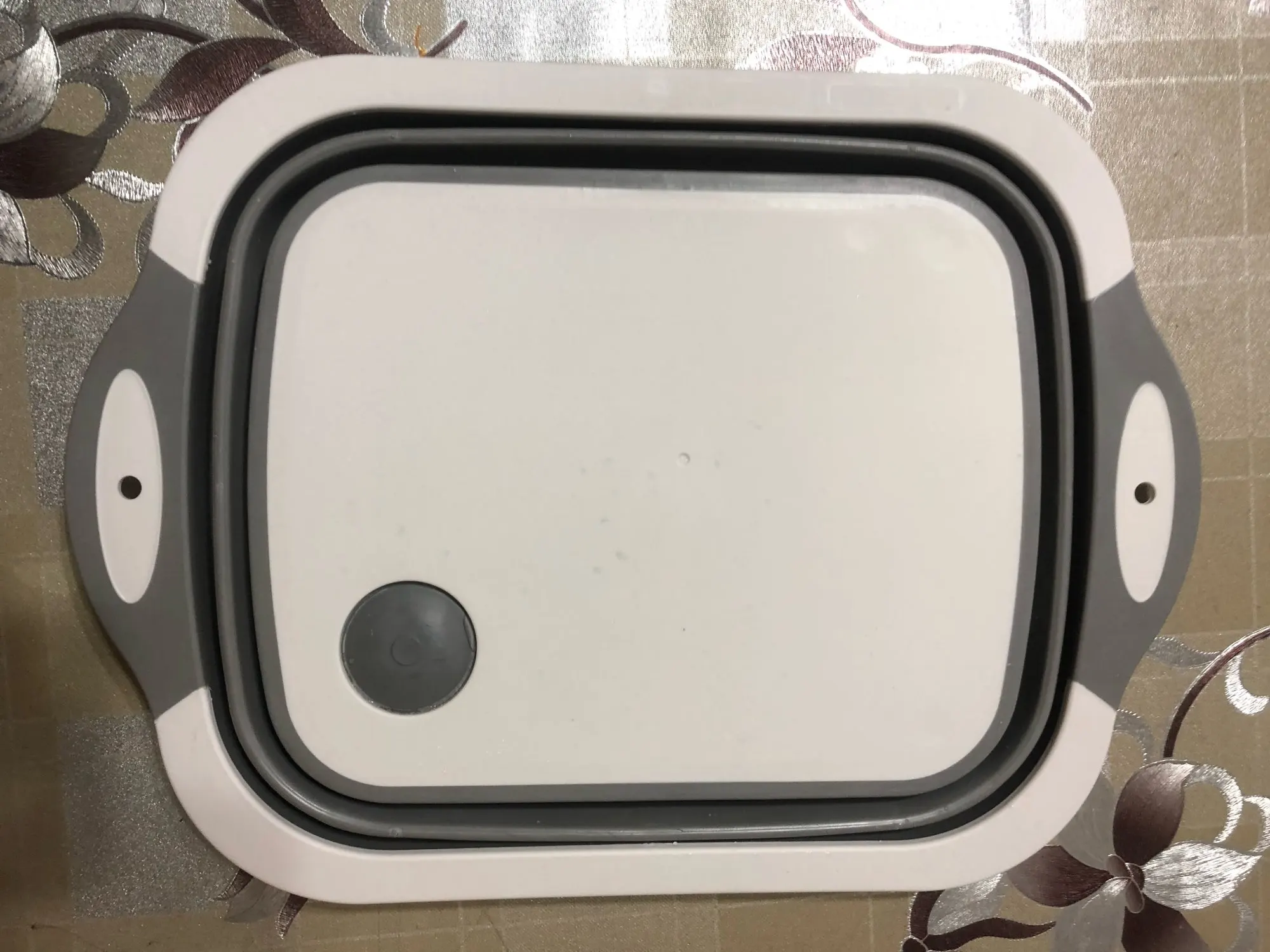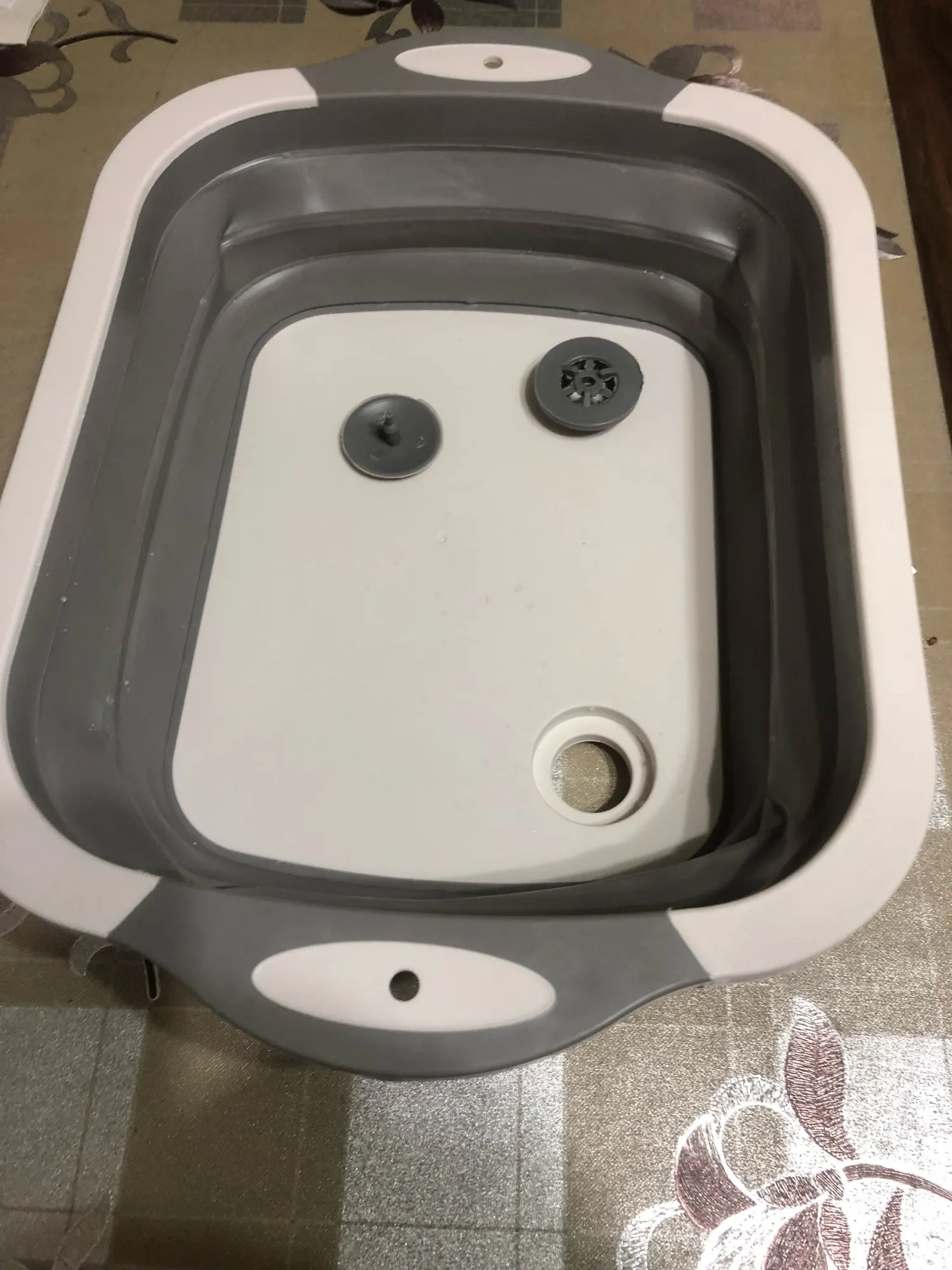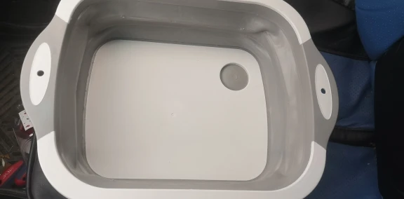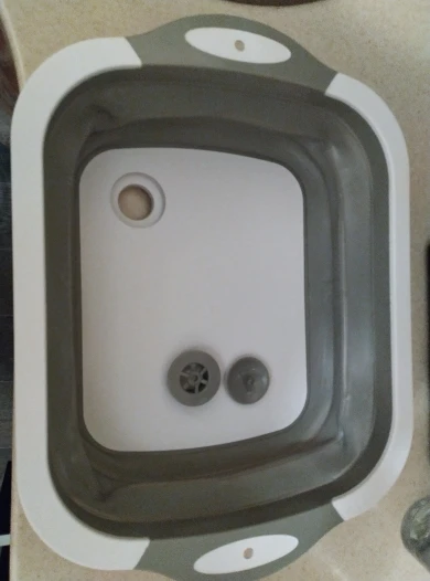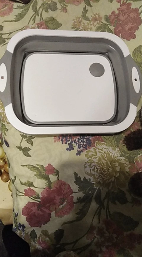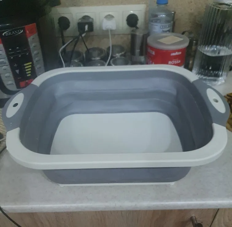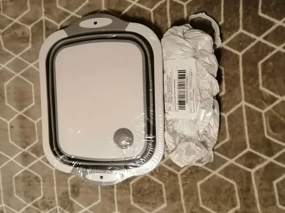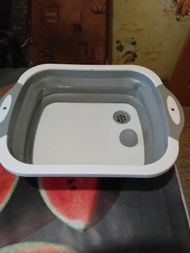 Доска и тазик, два в одном. Доска изготовлена из пластика, тазик из плотного силикона. Есть маленькие ножки. Складывается удобно. Есть отверстие для слива воды с заглушкой. Продавец отправил товар быстро.