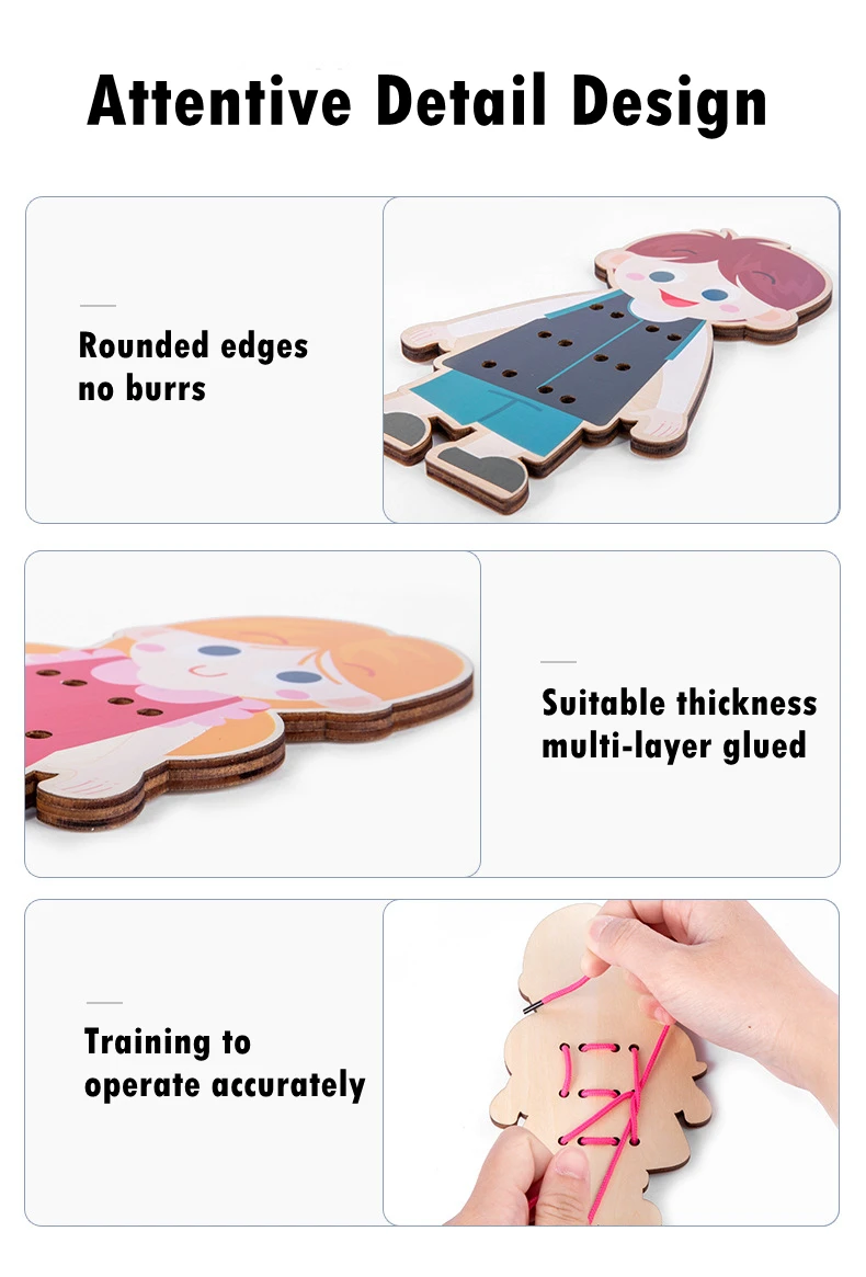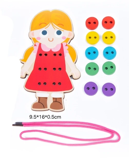 Деревянные детские игрушки Монтессори, обучающая обувь для базовых жизненных навыков на шнуровке, доска с пуговицами для резьбы, Игрушки для раннего развития