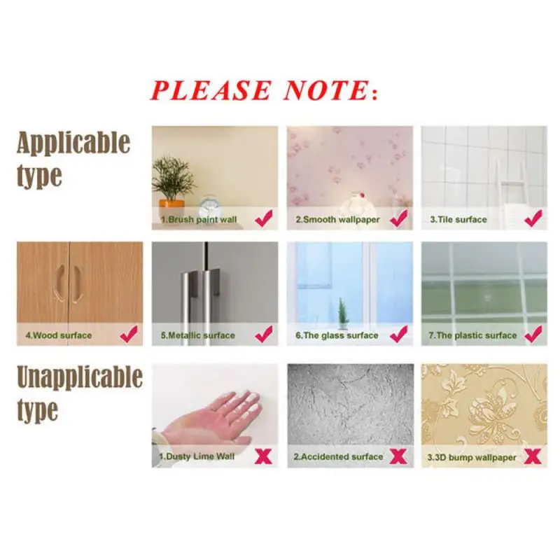 Подходит для любой чистой гладкой стены, плитки, окон, металла, шкафа, пластика.