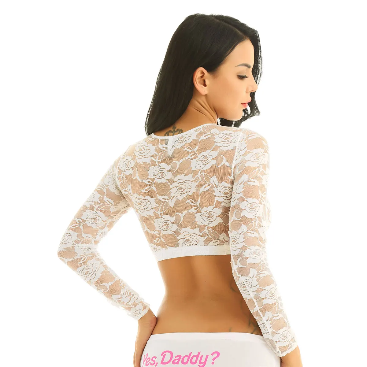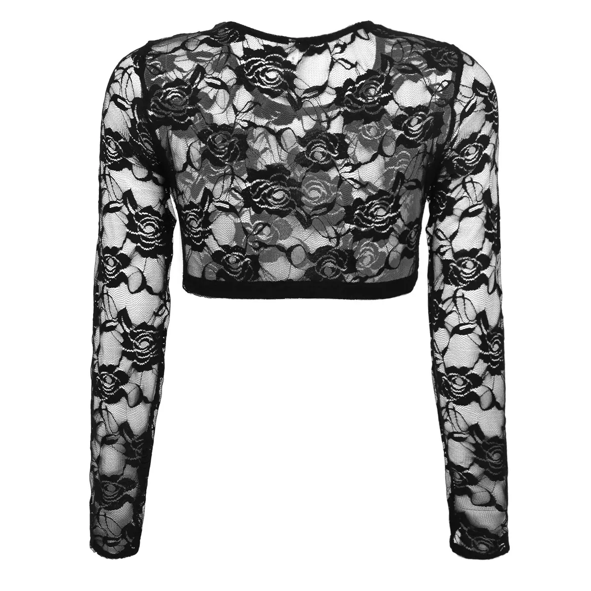 Длинные рукава и круглый вырез, кружевная Цветочная сетка, Просвечивающая дизайн, застежка-липучка.